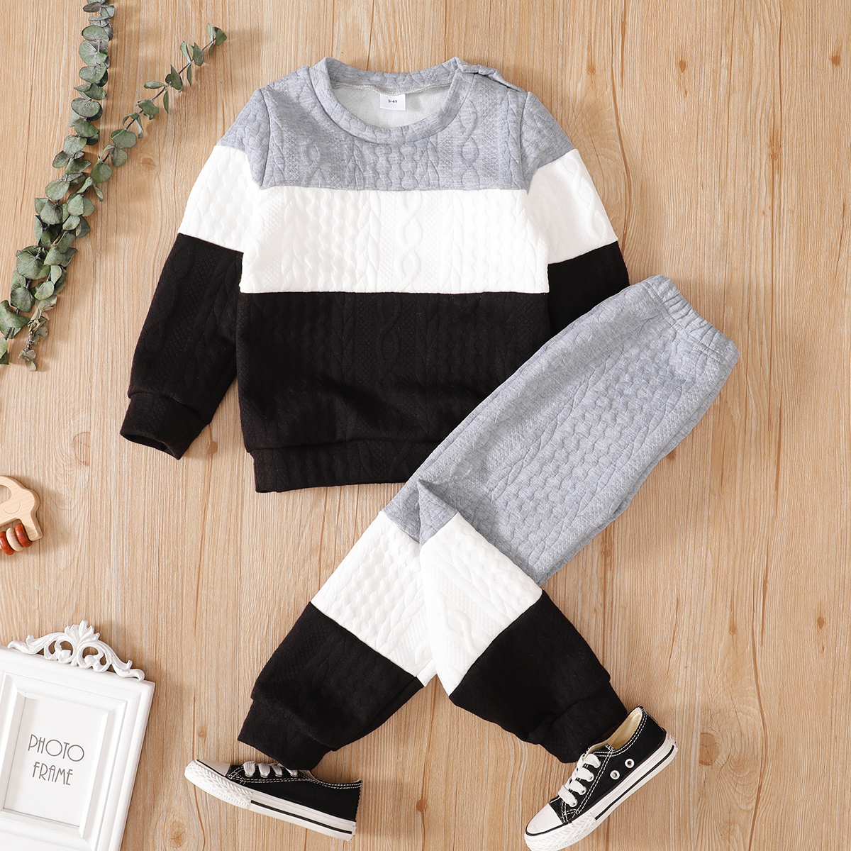 * Colorblock & Cable Knit * Soft and comfy * Set includes: 1 Top + 1 Pants * Material: 98% Polyester, 2% Spandex * Machine wash, tumble dry * Imported