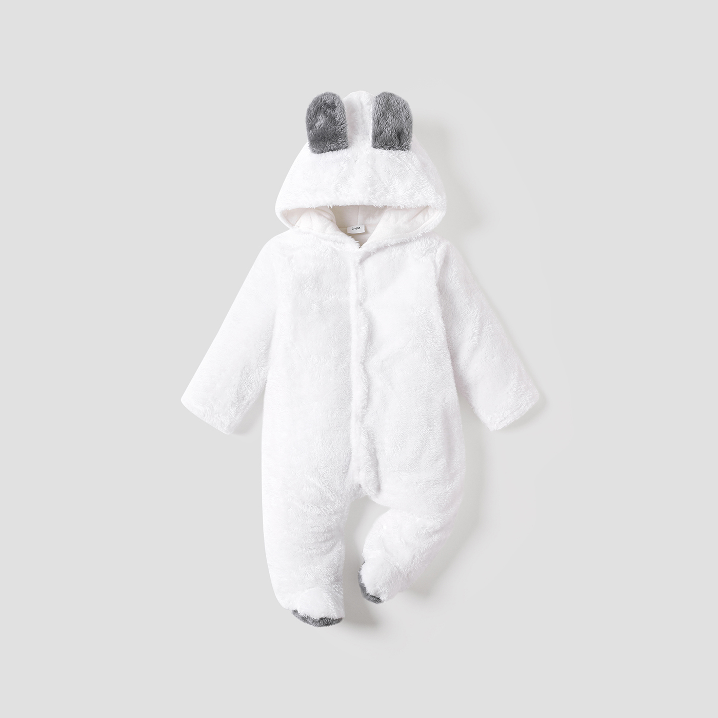 Solid Hooded 3D Bear Design Long-sleeve Baby Jumpsuit