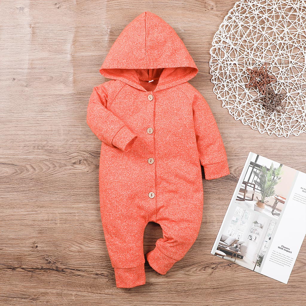 Solid Hooded Long-sleeve Baby Jumpsuit