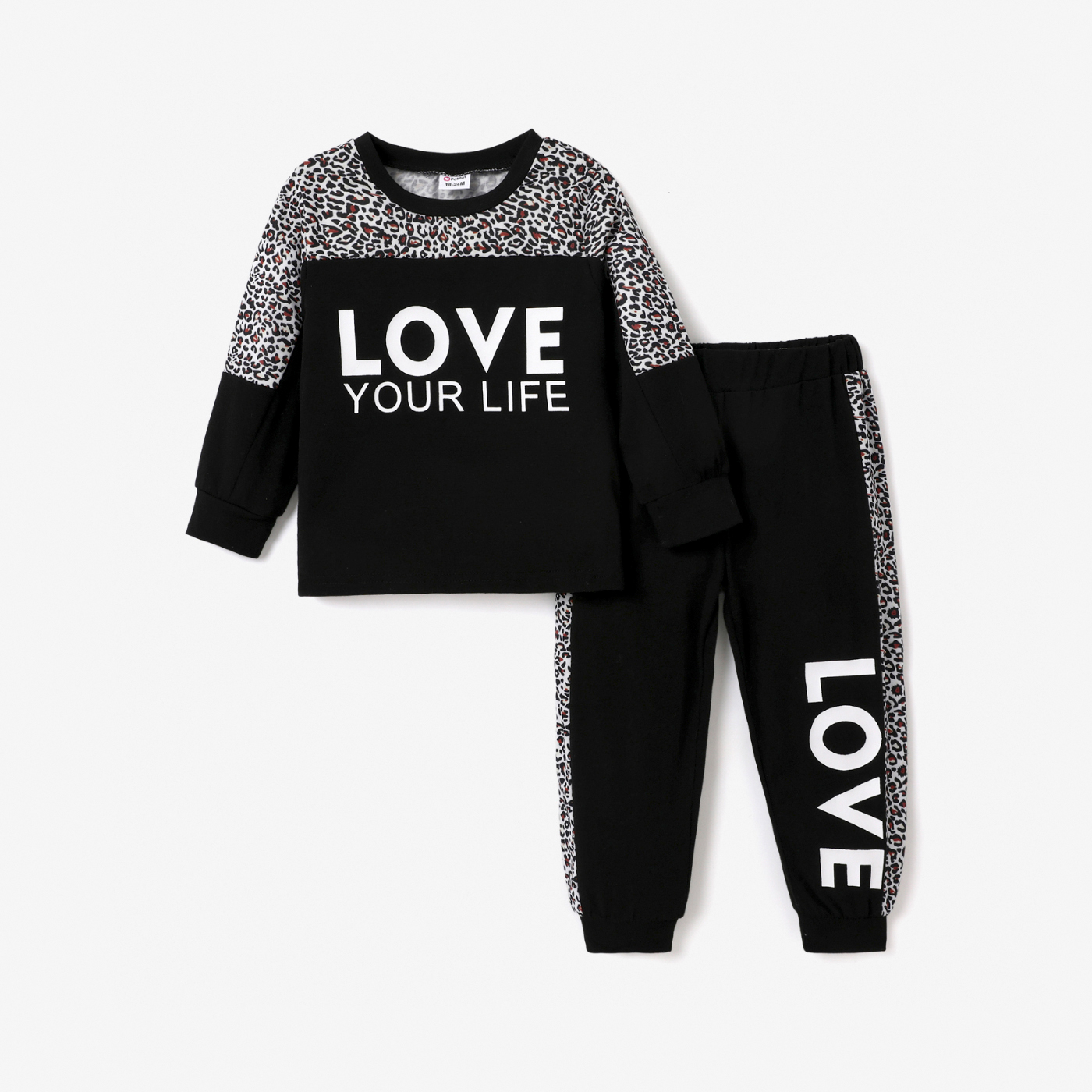 2-piece Toddler Girl Letter Leopard Print Sweatshirt and Pants Set
