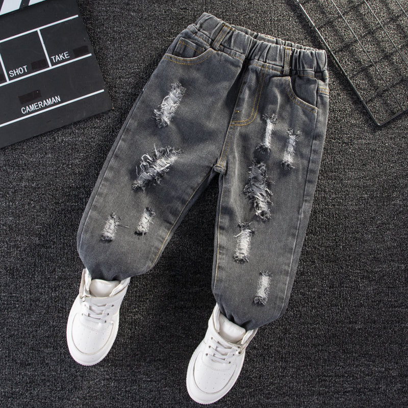 Toddler GirlBoy Elasticized Ripped Denim Jeans
