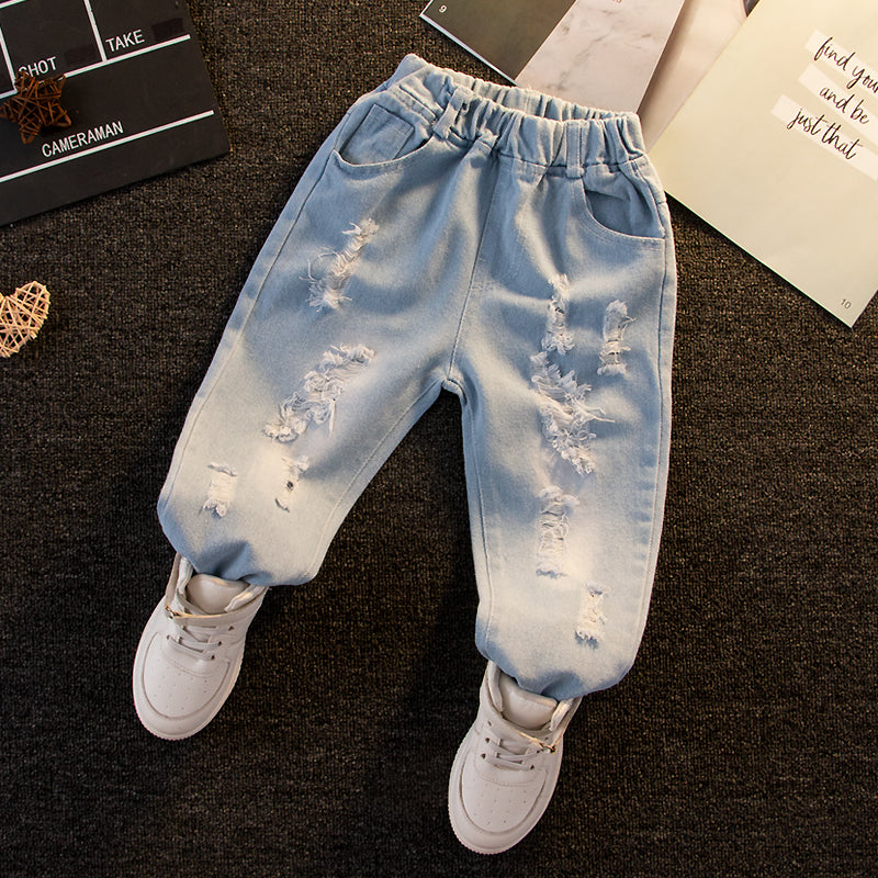 Toddler GirlBoy Elasticized Ripped Denim Jeans