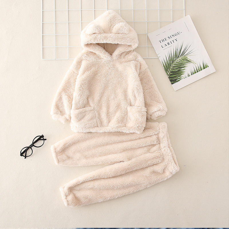 2 piece Toddler GirlBoy Ear Design Fuzzy Hoodie Sweatshirt and Pants