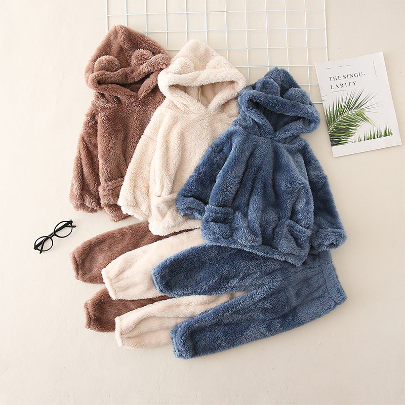 2 piece Toddler GirlBoy Ear Design Fuzzy Hoodie Sweatshirt and Pants