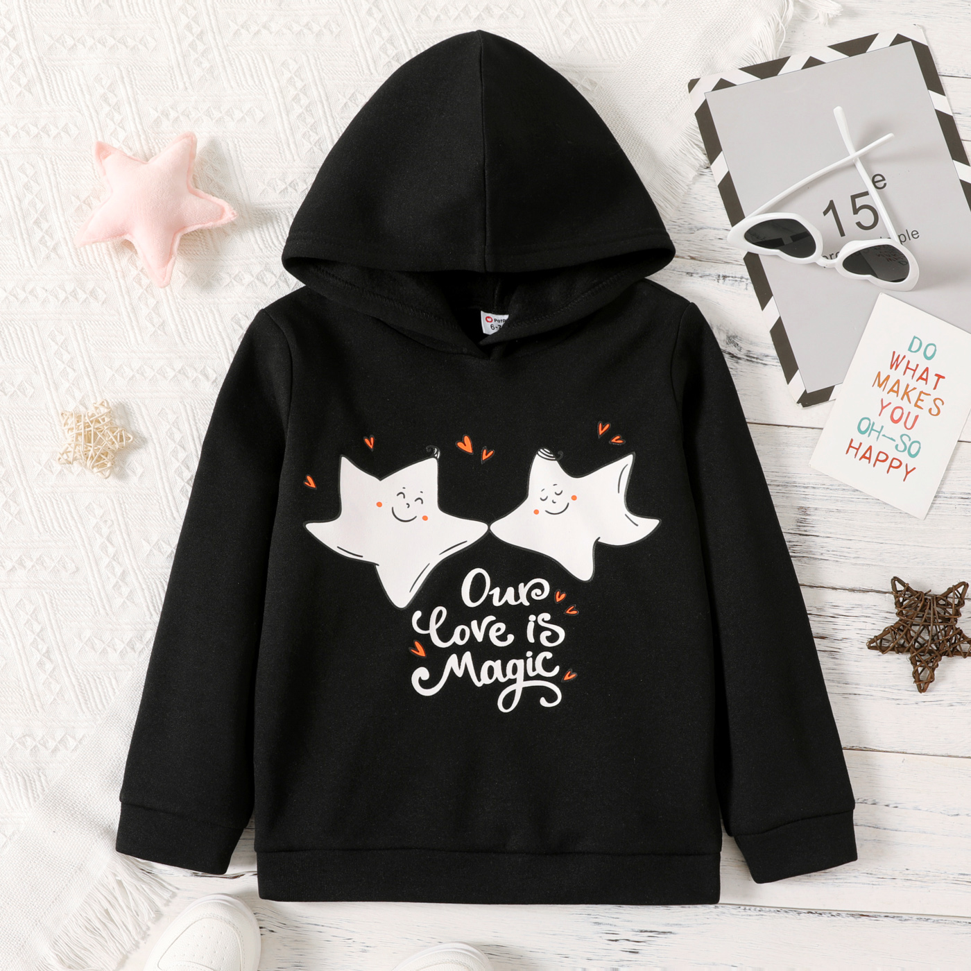 Kid Girl Letter Stars Print Fleece Lined Hoodie Sweatshirt