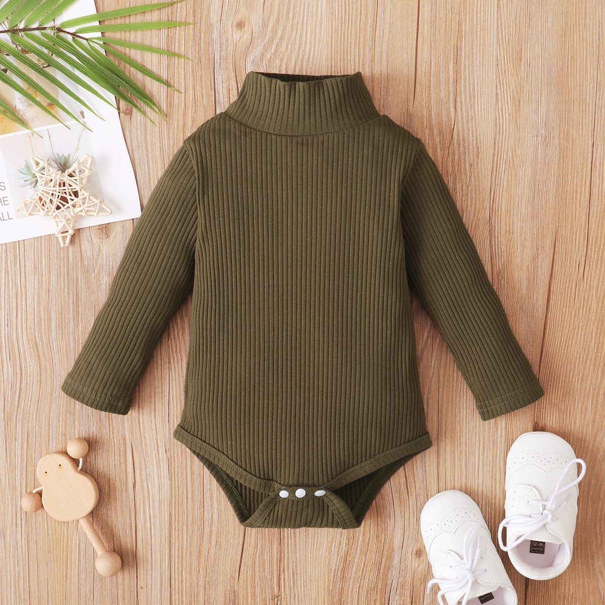 Baby Boy/Girl 95% Cotton Ribbed Turtleneck Long-sleeve Romper