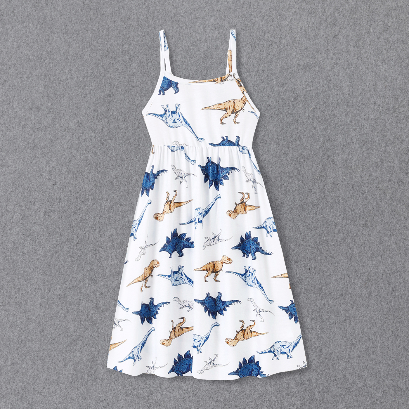Family Matching All Over Dinosaur Print Spaghetti Strap Midi Dresses and Short-sleeve T-shirts Sets