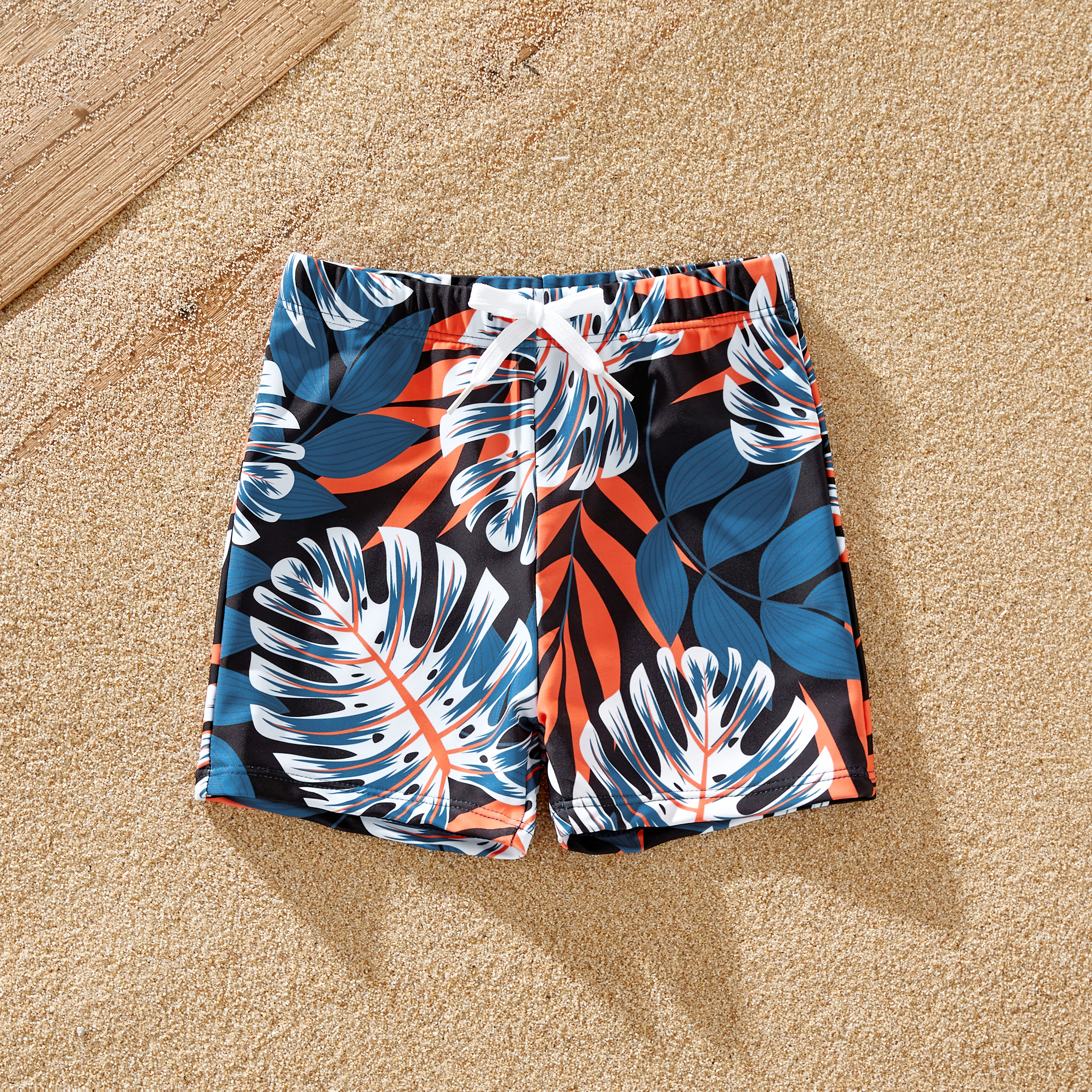 Family Matching Solid Splicing Palm Leaf Print Spaghetti Strap One-Piece Swimsuit and Swim Trunks Shorts