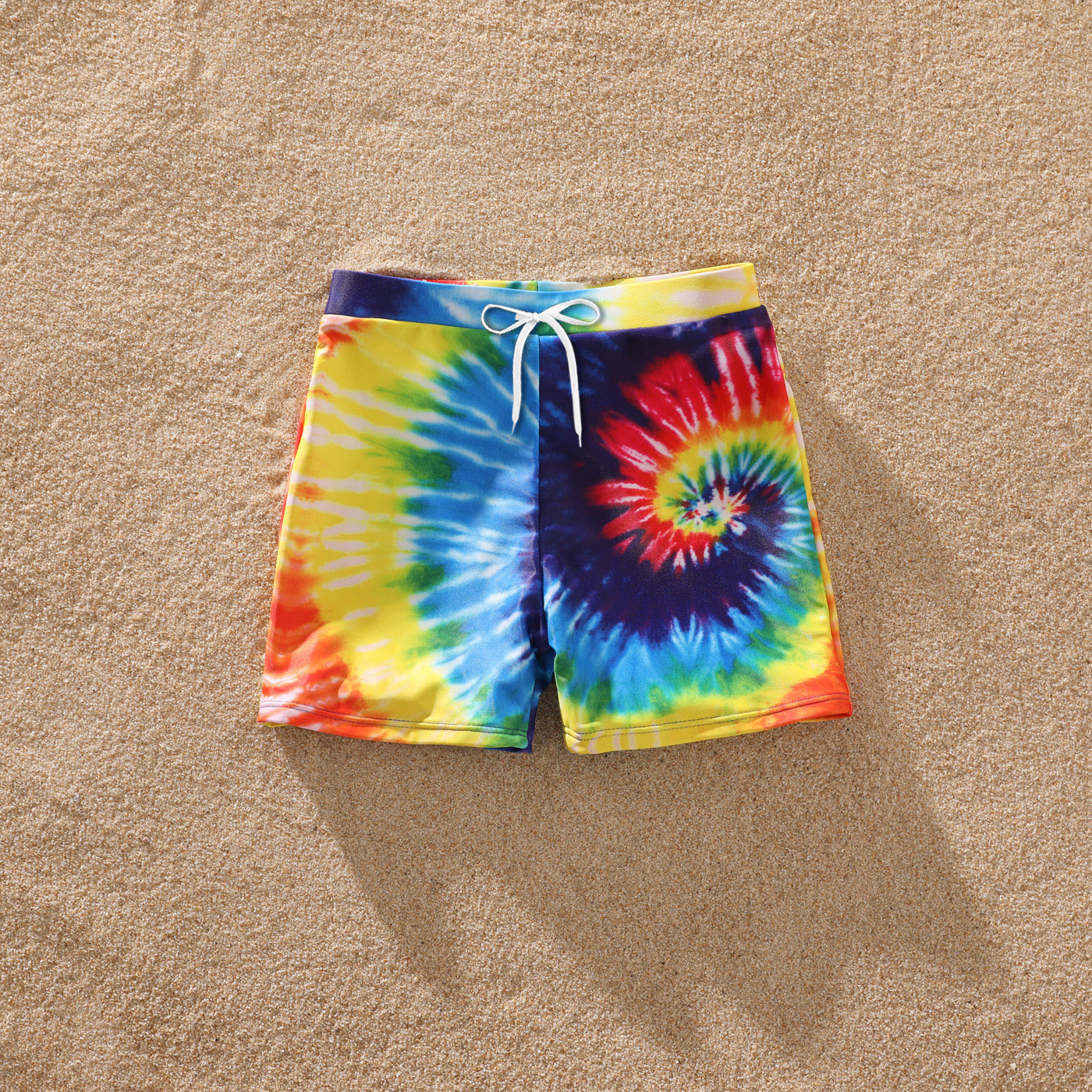 Product Introduction: Add a pop of color to your summer wardrobe with the trendy and comfy Family Tie Dye Bikini and Shorts Set.nFabric: Made of 82% polyester and 18% spandex, this set is soft and durable.nCare Instruction: Machine wash and tumble dry for easy maintenance.nKey Features: •Please add each size separately to your shopping cart.