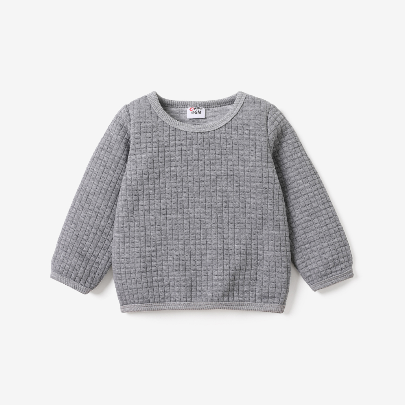Baby Boy/Girl Solid Waffle Textured Long-sleeve Pullover Sweatshirt