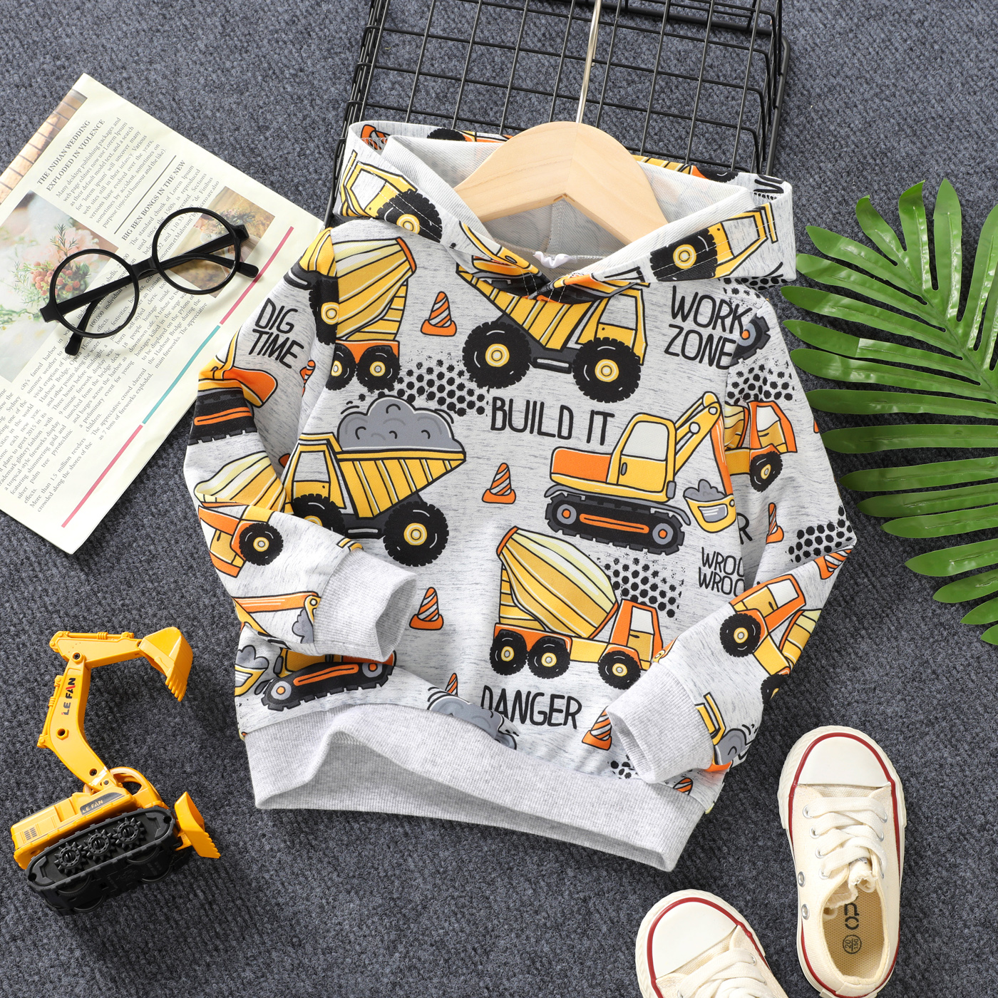 Toddler Boy Vehicle Excavator Print Hoodie Sweatshirt