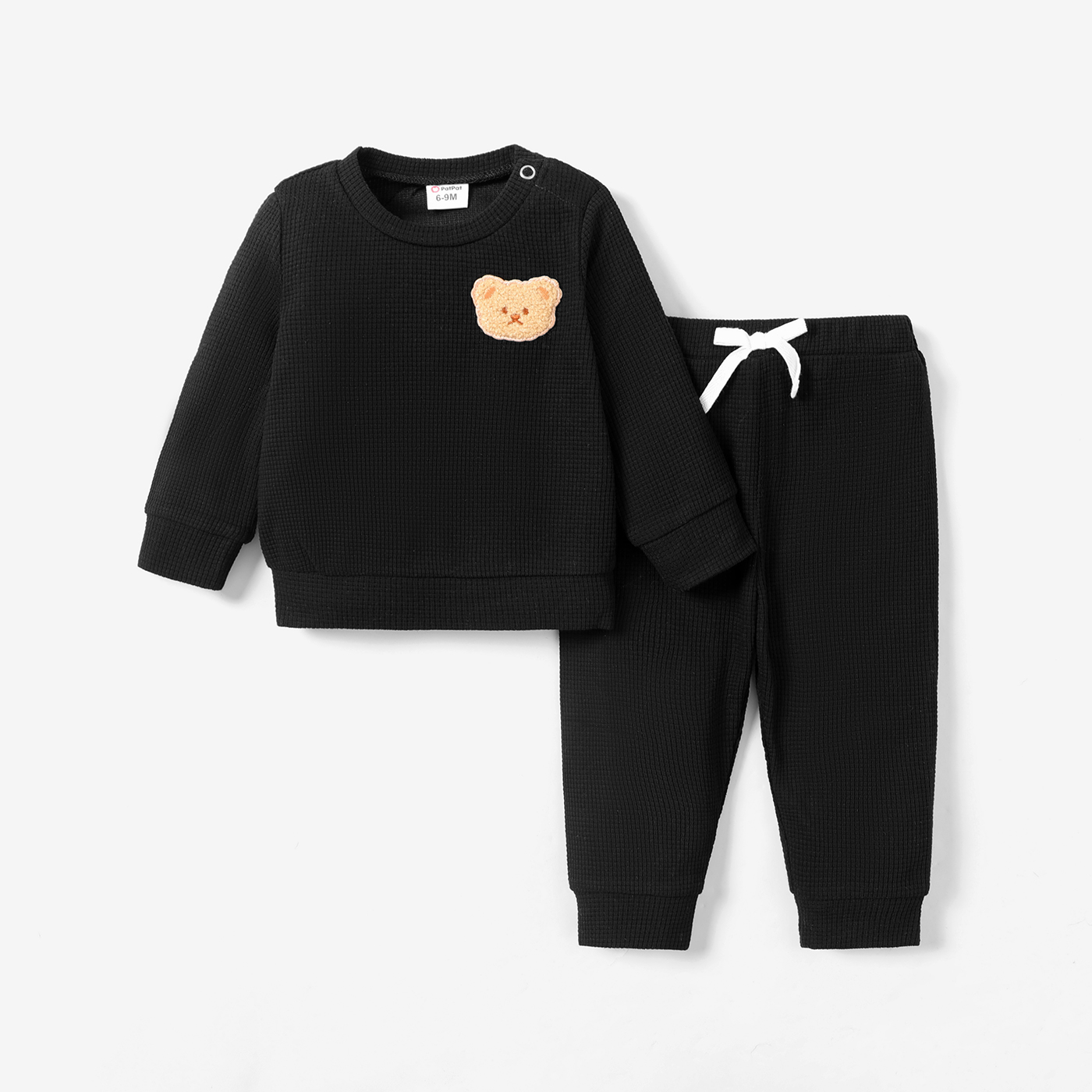 2pcs Baby Boy Cartoon Bear Detail Solid Textured Long-sleeve Pullover Sweatshirt and Sweatpants Set