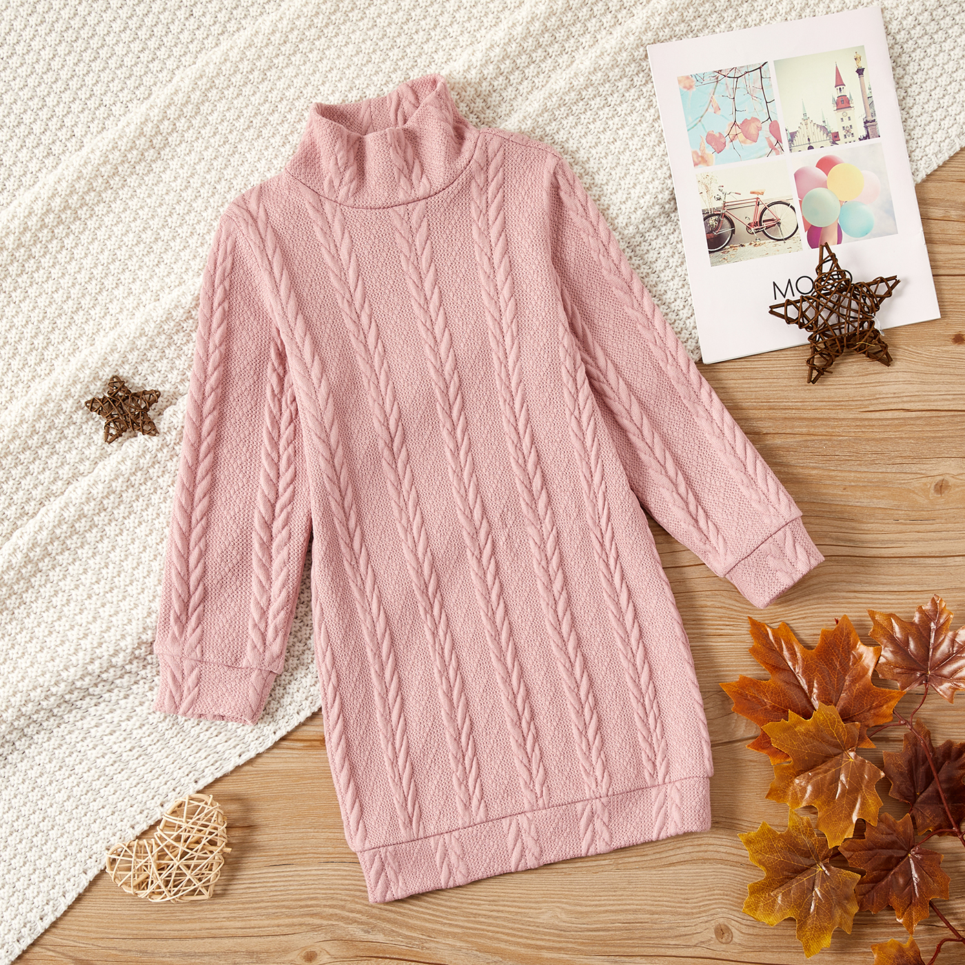 Kid Girl Solid Color Cable Knit Textured Mock neck Sweater Dress