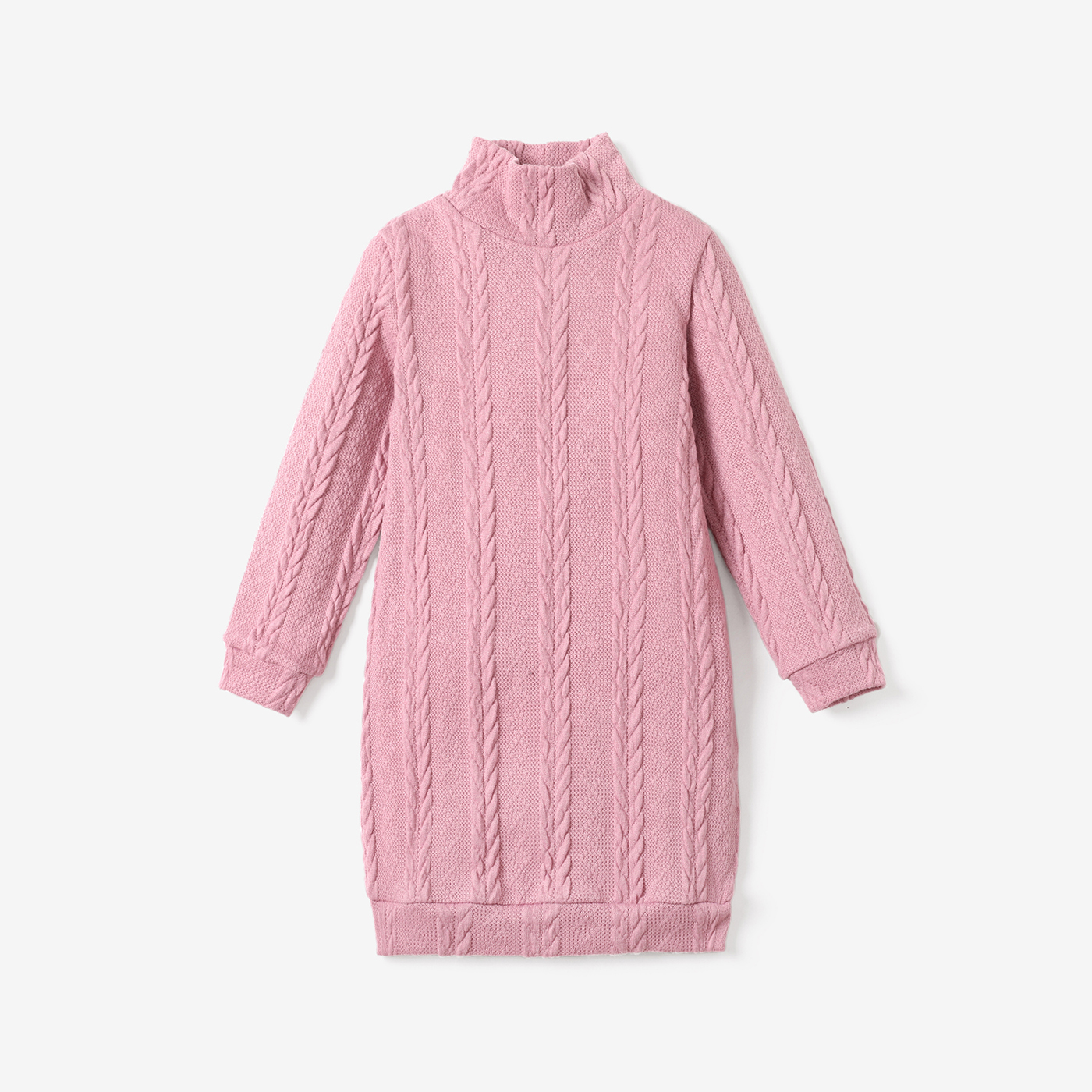 Kid Girl Solid Color Cable Knit Textured Mock neck Sweater Dress