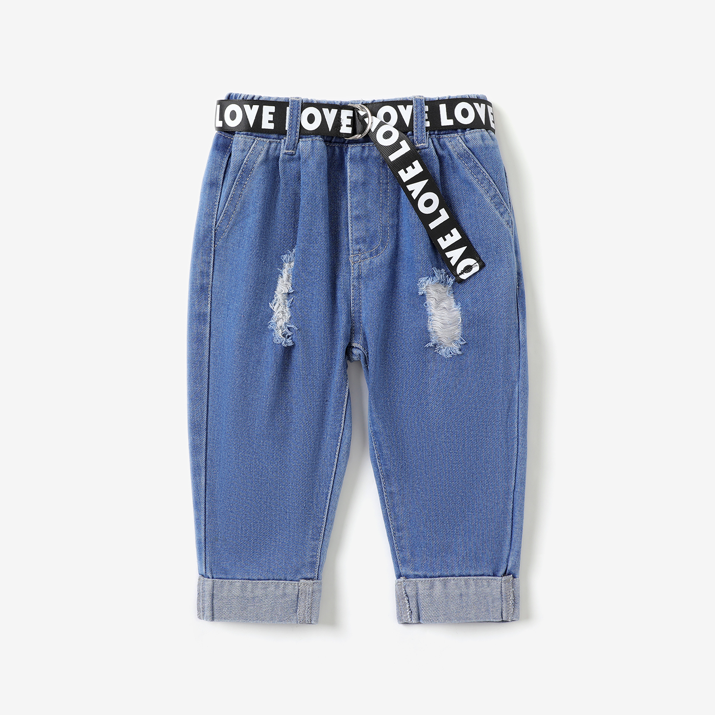 Baby Boy/Girl Belted Roll Up Hem Ripped Jeans
