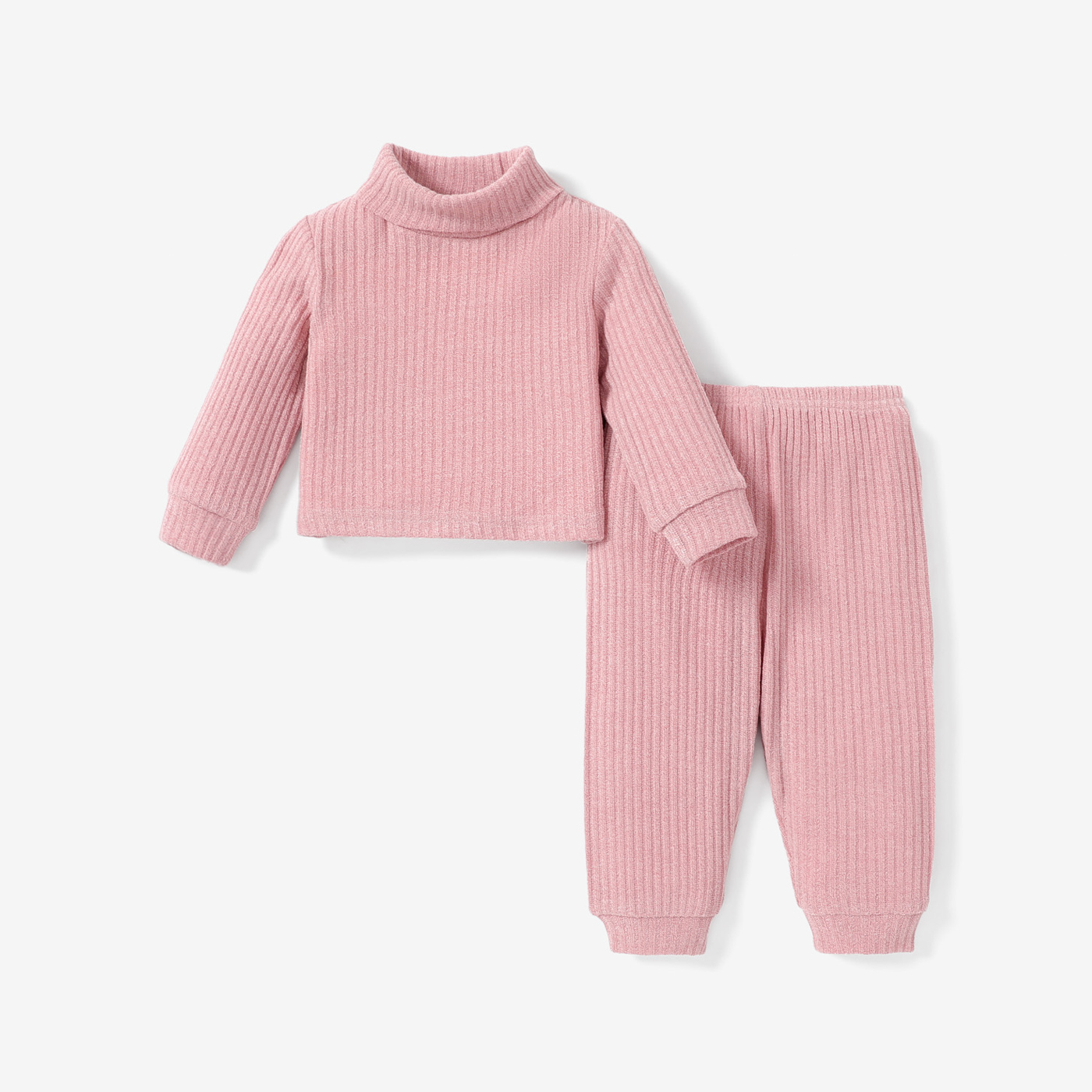 2pcs Baby Girl Solid Rib Knit Turtleneck Long-sleeve Set