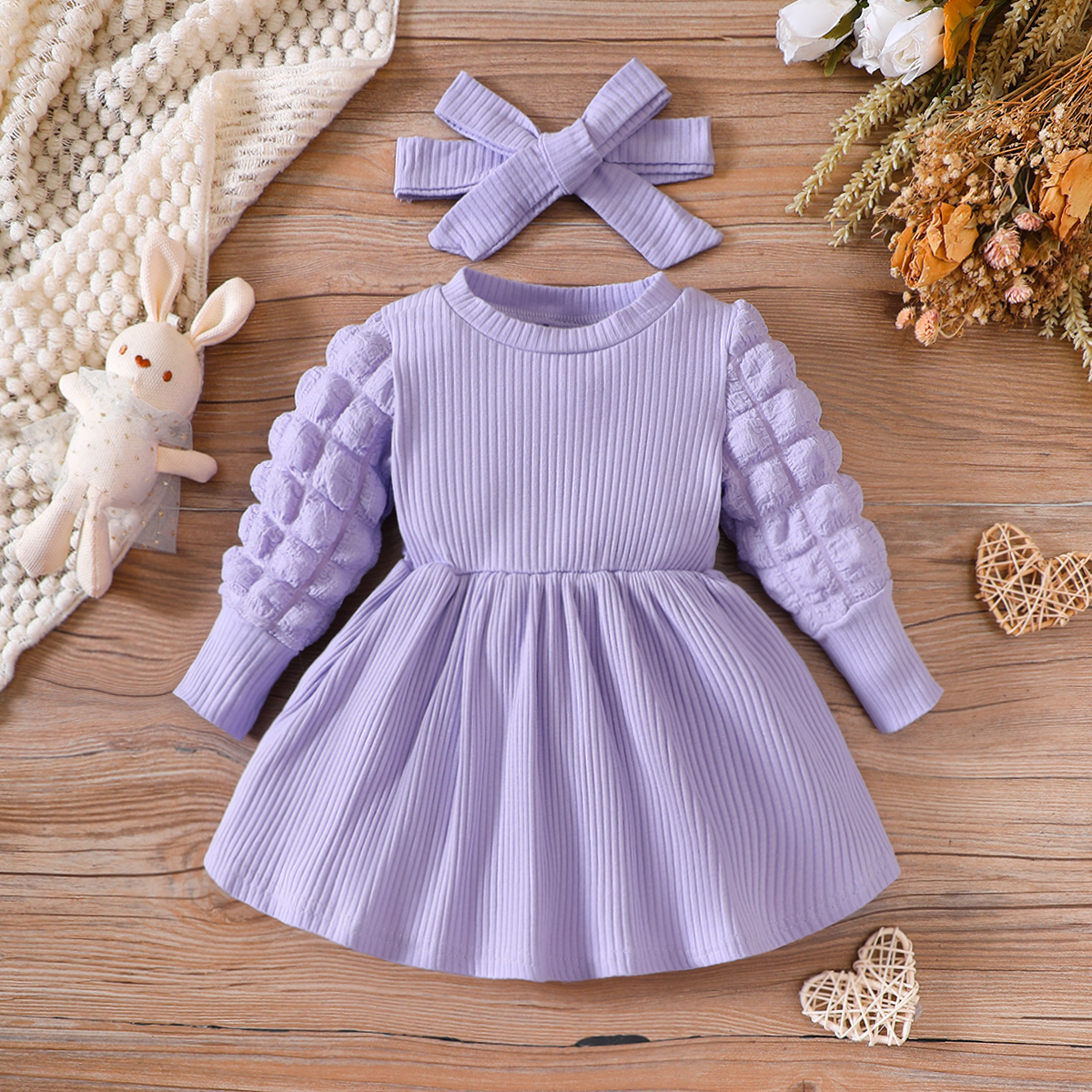 Product Introduction: Sweet and lovely dress, perfect for autumn outings and daily wear.nnFabric: Made of 95% cotton and 5% spandex (sleeves made of 100% polyester).nnCare Instruction: Machine wash in cold water, do not bleach, tumble dry low, iron low heat (100°C), do not dry clean.nnKey Features: * Product features: Sweet and lovely dress * Fabric characteristics: Textured fabric, moderate elasticity * Piece of product: 2-piece set including a dress and a headband * Neckline: Round neckline * Sleeves: Long sleeves * Style: Sweet and lovely dress with a spliced fabric design * Fit: Loose fit * Length: Extended length * Source of goods: Imported * Supplier: PatPatnnAdditional Information: Suitable for autumn outings and daily wear, featuring a sweet and lovely spliced fabric design