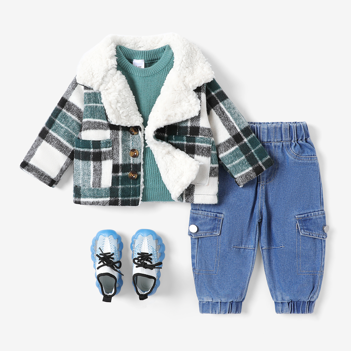 Product Introduction: Fashionable kids top with a lapel design, featuring a stylish and avant-garde look that keeps your little one warm and comfortable during winter outings and everyday wear.nFabric: Made of 100% polyester, this top is thick and soft.nCare Instruction: Machine wash in cold water, do not bleach, tumble dry on low heat, iron on low heat, do not dry clean.nKey Features: * Product features: Suit-style design with a large plaid pattern.