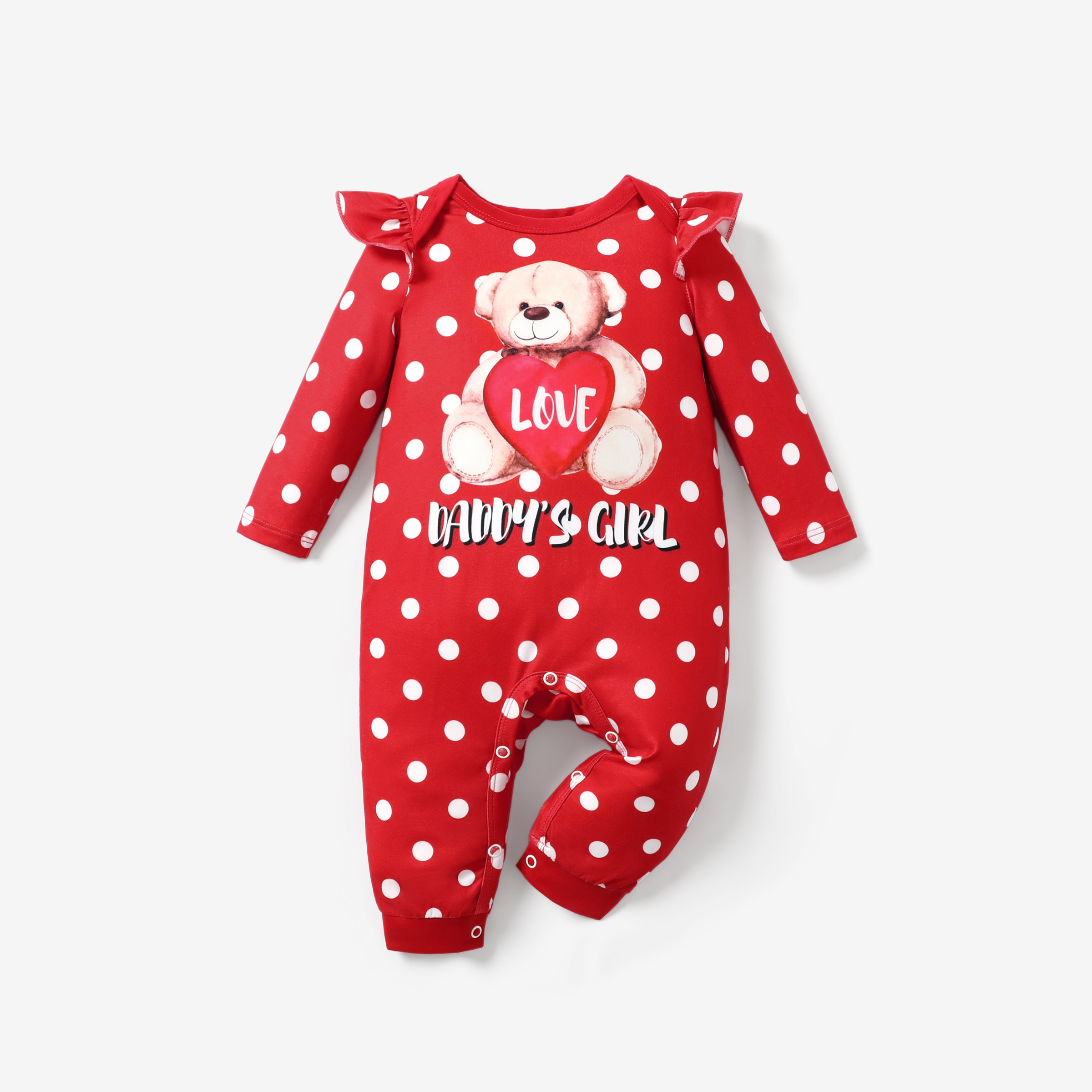 Product Introduction:Get your little one looking sweet and adorable with our Bear and Polka Dot Print Romper! With its cute bear and polka dot prints, cute flutter sleeves, and comfortable fit, this romper is perfect for any outing or special occasion.;Fabric:Made with 93% polyester and 7% spandex for a soft and comfortable feel.;Care Instruction:Machine wash cold, do not bleach, tumble dry low, cool iron if needed, do not dry clean.;Key Features:*Product features: Bear and polka dot print options, cute flutter sleeves