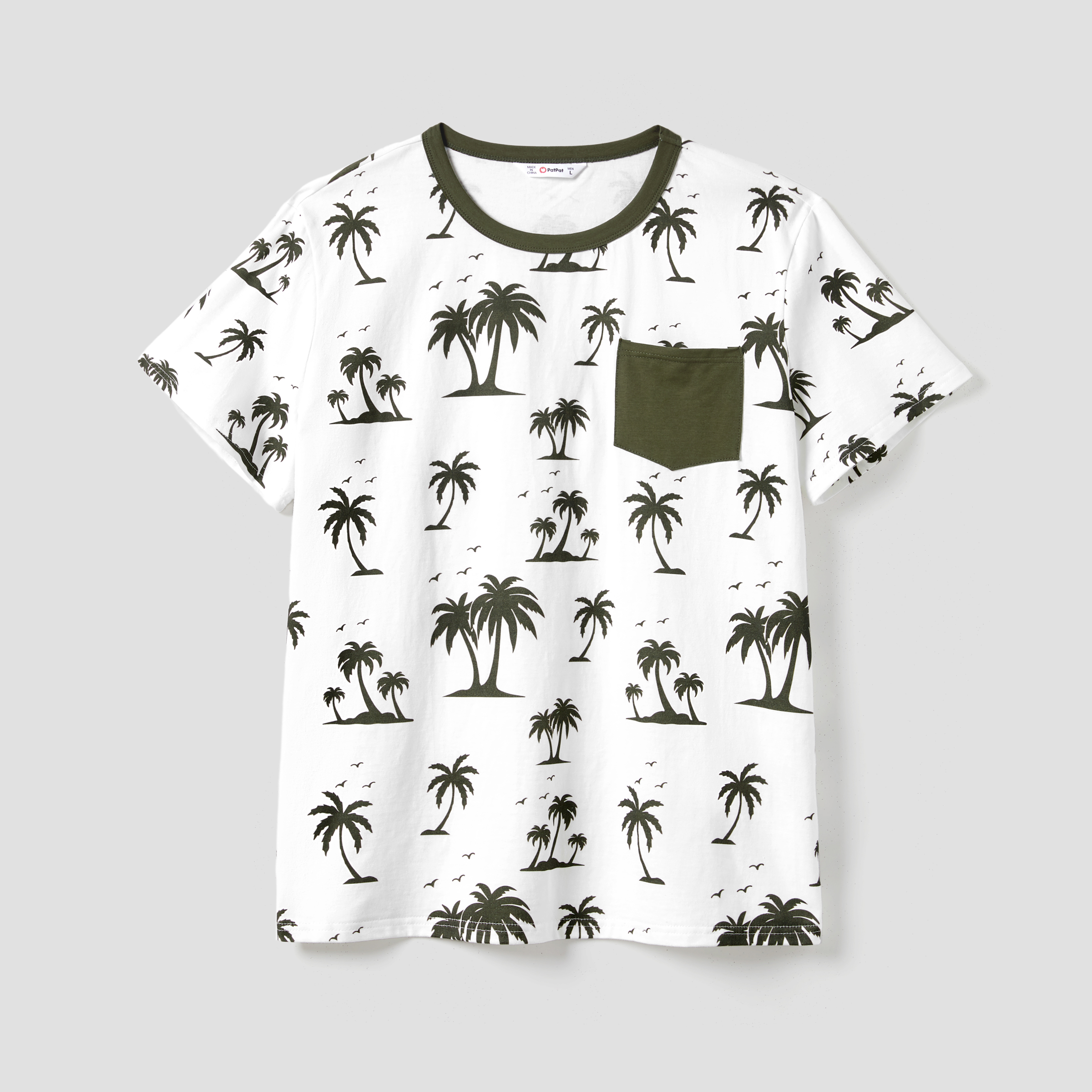 Product Introduction: Perfect for a family vacation, our matching outfit set in military green with tropical plant prints is comfortable and breathable for any occasion.nFabric: Dress: cotton (95%) and spandex (5%) blend; T-shirt: cotton (100%)nCare Instruction: Machine wash with cold water, do not dry clean, bleach, or tumble dry. Iron with low heat.nKey Features: * Please add each size separately to your shopping cart.