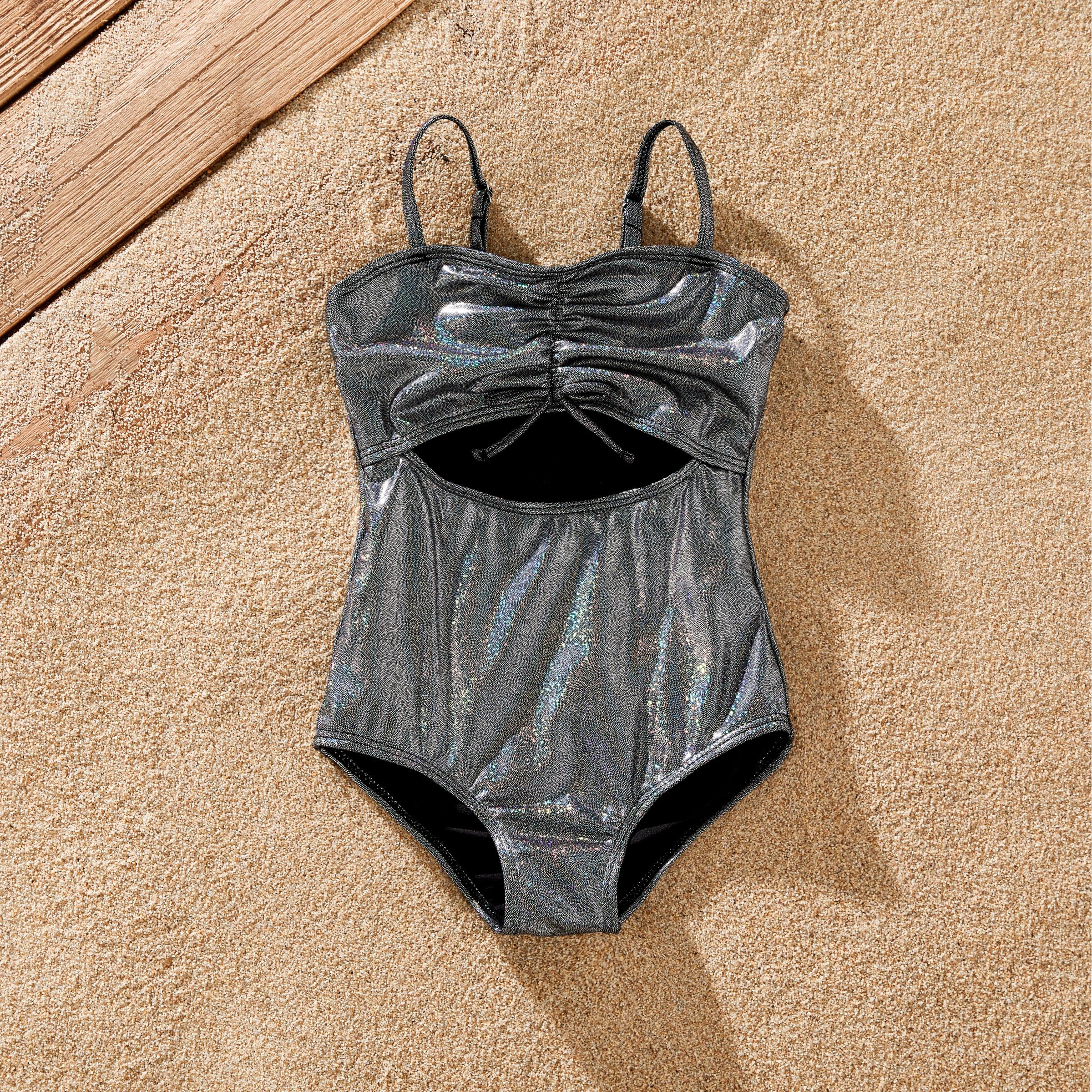 Product Introduction: Laser hollow-out family matching swimwear set for summer beach vacation.nFabric: 88% polyester and 12% spandex, and the lining is made of 82% polyester and 18% spandex. Waterproof and lightweight.nCare Instruction: Low-temperature ironing. Do not dry clean; machine wash in cold water; do not bleach.nKey Features: * Please add each size separately to your shopping cart. * Piece of product: One one-piece swimsuit or one pair of swimming trunks. * Product features: Laser hollow-out family matching swimwear set. * Swim trunks with adjustable drawstring * Women's swimsuits have adjustable straps * Fabric characteristics: Soft and comfortable to wear on the beach. * Neckline: Strap swimsuit. * Sleeves: Sleeveless. * Style: Trendy and beautiful design for family. * Fit: Moderate fit. * Length: Regular length. * Source of goods: Imported. * Supplier: PatPat.nAdditional information: Suitable for summer and beach vacation occasions.