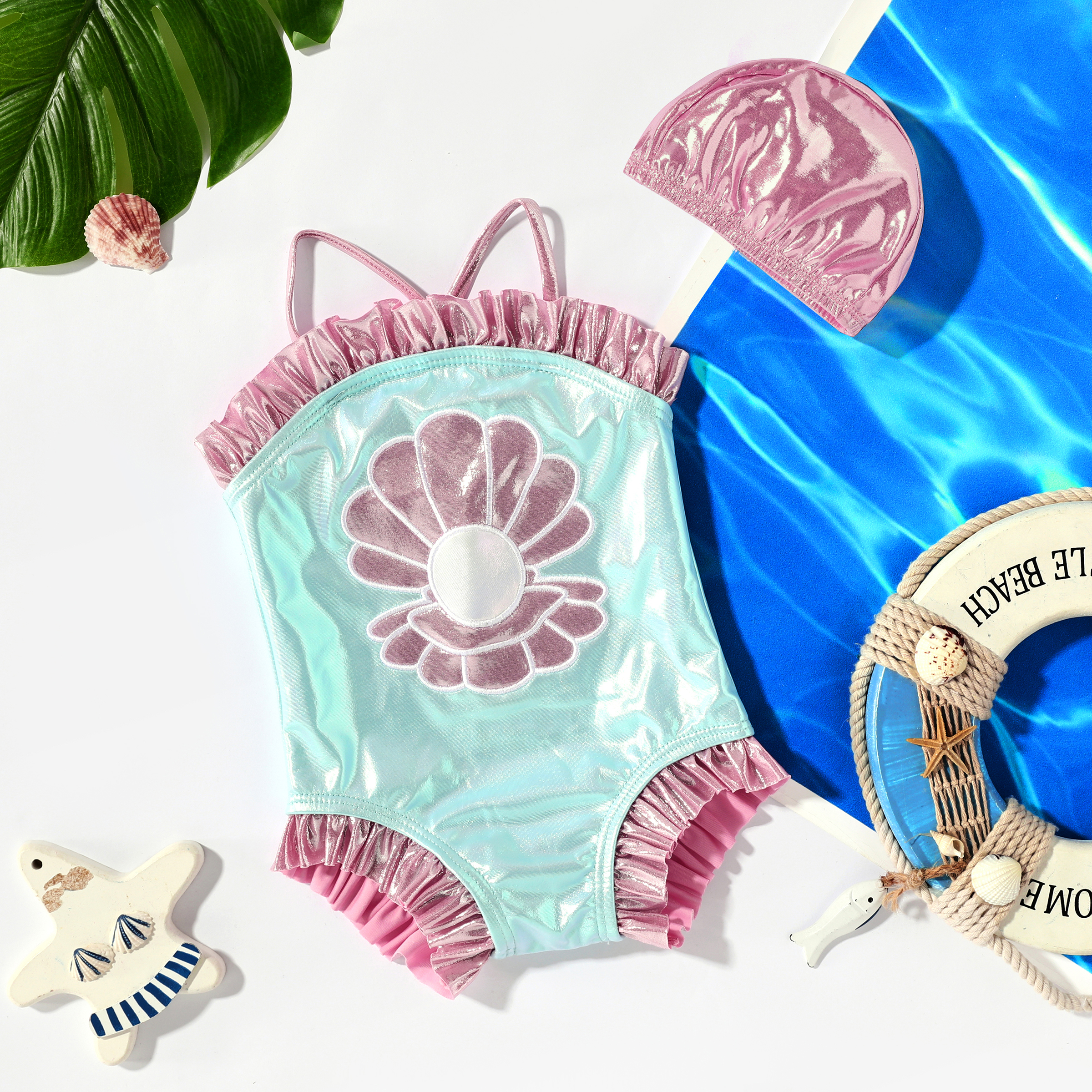 Sweet Girls' Shell One-Piece Swimsuit with Ruffle Edge (Polyester/Spandex)