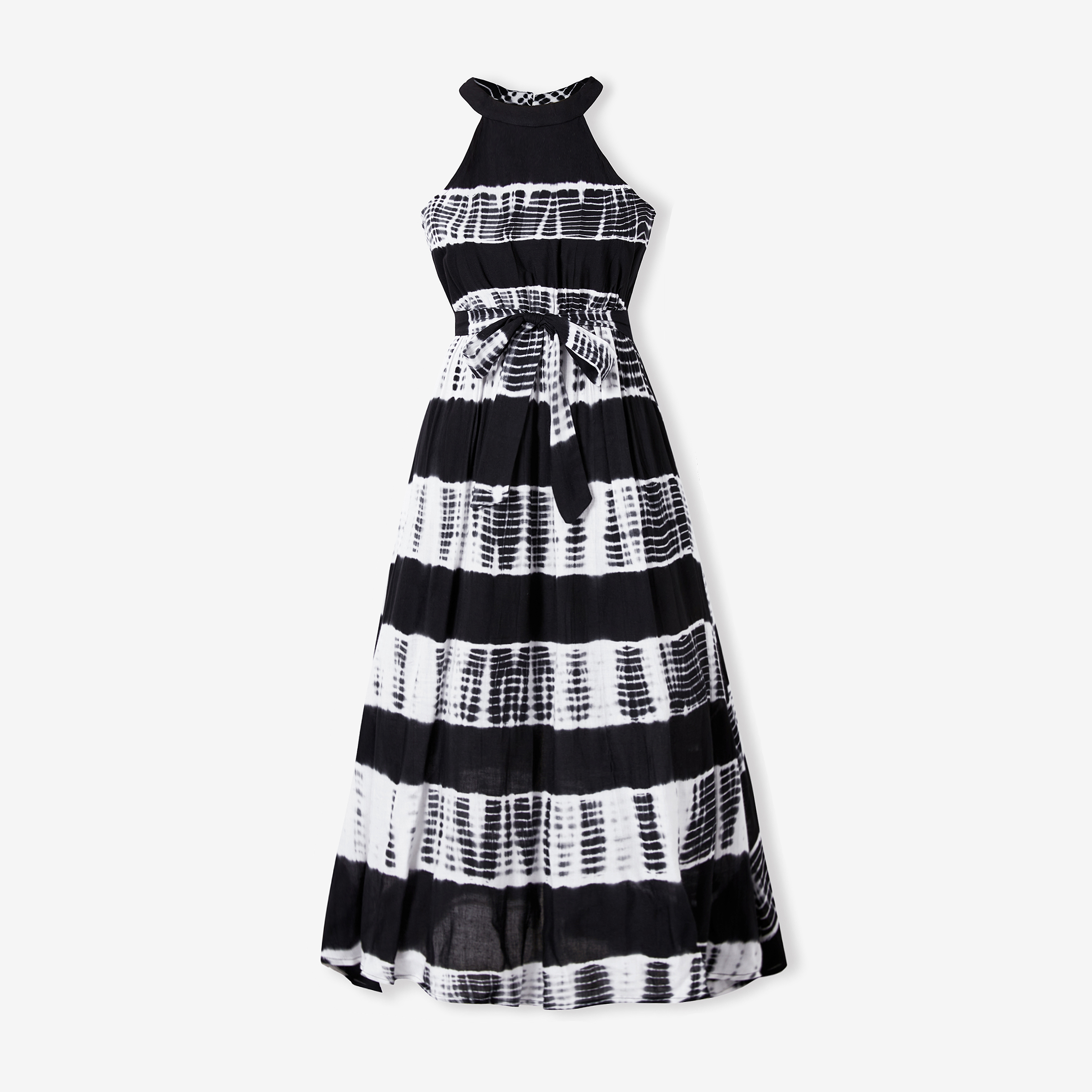 *Supplier: PatPat;Additional Information:Suitable for summer, occasions such as holidays and casual outings. Chic black and white stripe and tie-dye prints with ruffled details add playful charm to family outings.;