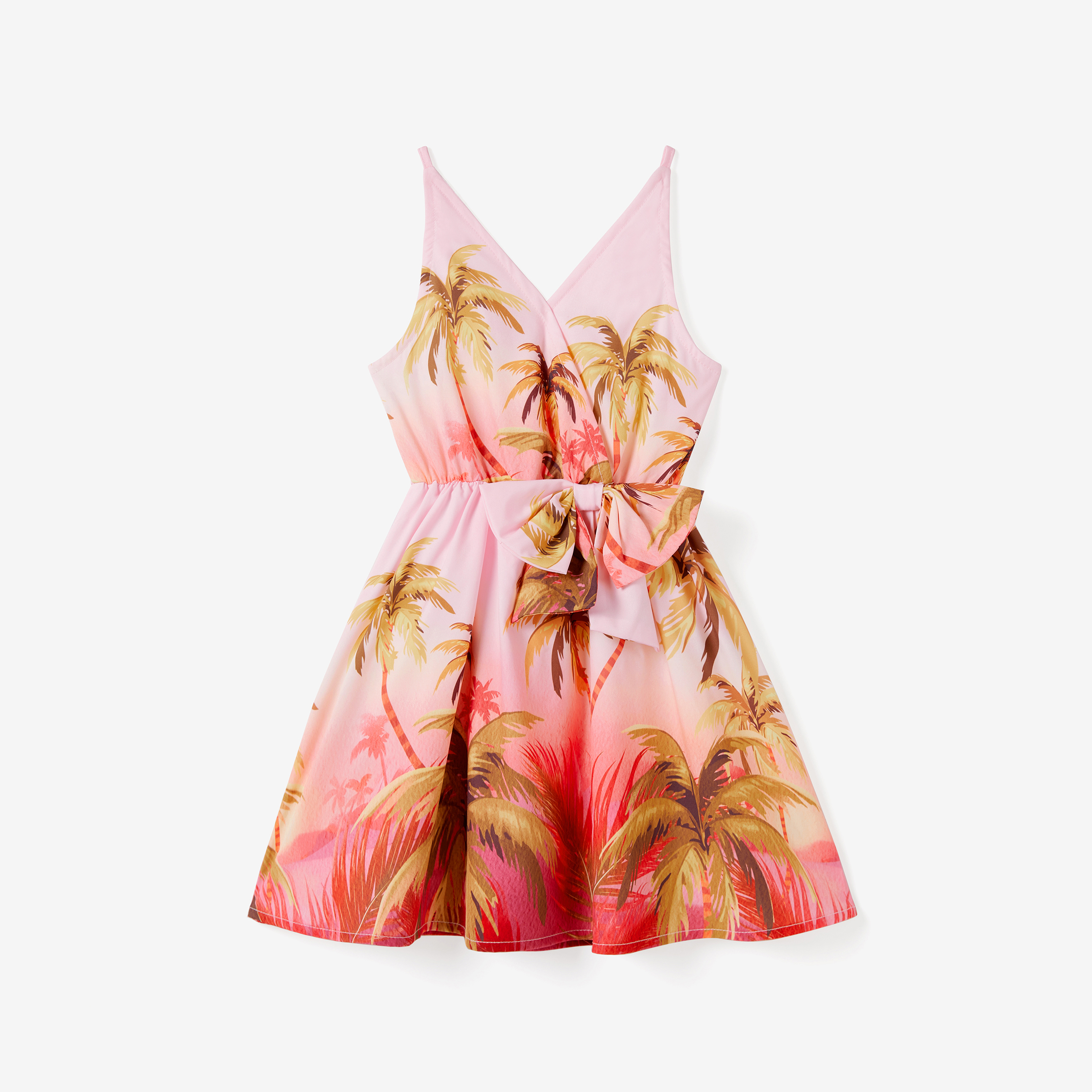 Product Introduction:Matching family vacation outfits in vibrant pink tropical print.;Fabric:Made with 95% polyester and 5% spandex. Inner lining of dress is 100% cotton.;Care Instruction:Iron in low temperature. Do not dry clean. Machine wash in cold water. Do not bleach.;Key Features:* Please add each size separately to your shopping cart. * Each size includes 1 dress, or 1 top, or 1 romper per size. * Classic shirt collar / V-neck dress. * Short sleeves / sleeveless. * Knee-length skirt. * Casual vacation style in tropical print. * Imported. * Suitable for summer occasions such as travel, vacation, party, beach and island.;Additional Information:Suitable for summer and vacation wear. The vibrant tropical print and bow side design makes this set a fun, stylish choice for family vacation photos.;