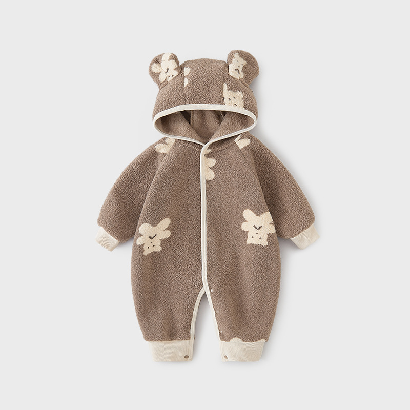 Baby Fleece Hooded Jumpsuit with Bear Ears and Cozy Animal Print