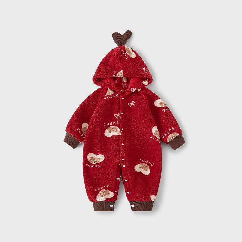 Baby Fleece Hooded Jumpsuit with Bear Ears and Cozy Animal Print