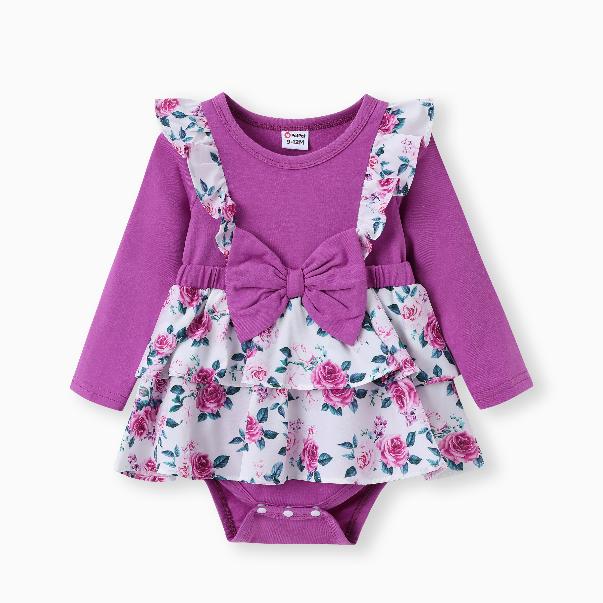 Product Introduction:“Get your little one ready for autumn adventures in the whimsical floral design of this comfy long-sleeve bodysuit from PatPat.”;Fabric:Crafted with a blend of 62% polyester, 5% spandex, and 33% cotton for the top part and 95% polyester and 5% spandex for the bottom part, this bodysuit offers a comfortable fit.;Care Instruction:Machine wash in cold water, do not bleach, tumble dry low, iron on low heat, do not dry clean.;Key Features:*Product features: Floral design *Fabric characteristics: Comfortable blend *Piece of product: Bodysuit *Neckline: Round neck *Sleeves: Long sleeves *Style: Kids’ style with a whimsical floral design *Fit: Regular fit *Length: Standard length *Source of goods: Imported *Supplier: PatPat;Additional Information:Suitable for outdoor autumn scenes, this bodysuit boasts a playful design perfect for your little one.;