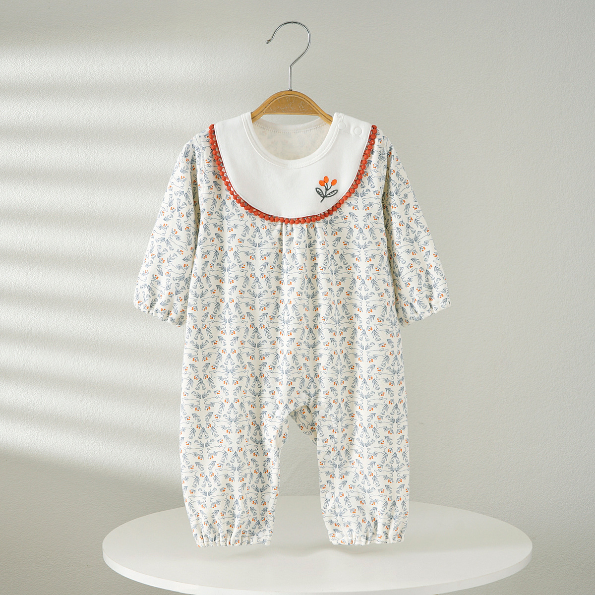Baby Long Sleeve Floral Print Romper with Embroidered Collar