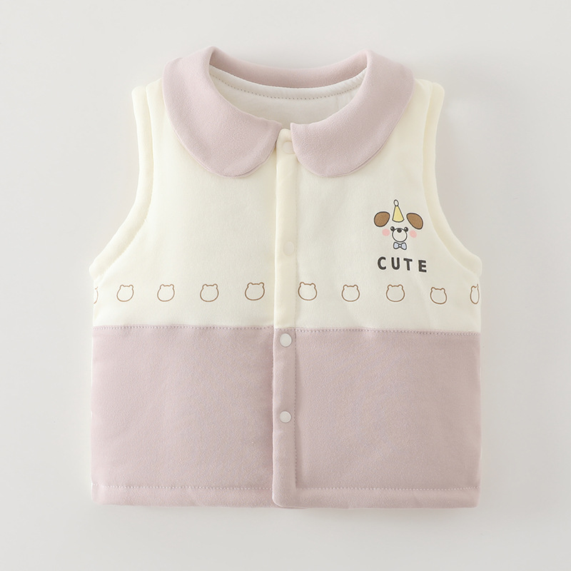 Baby Plush Sleeveless Vest with Cute Bear Print and Pocket