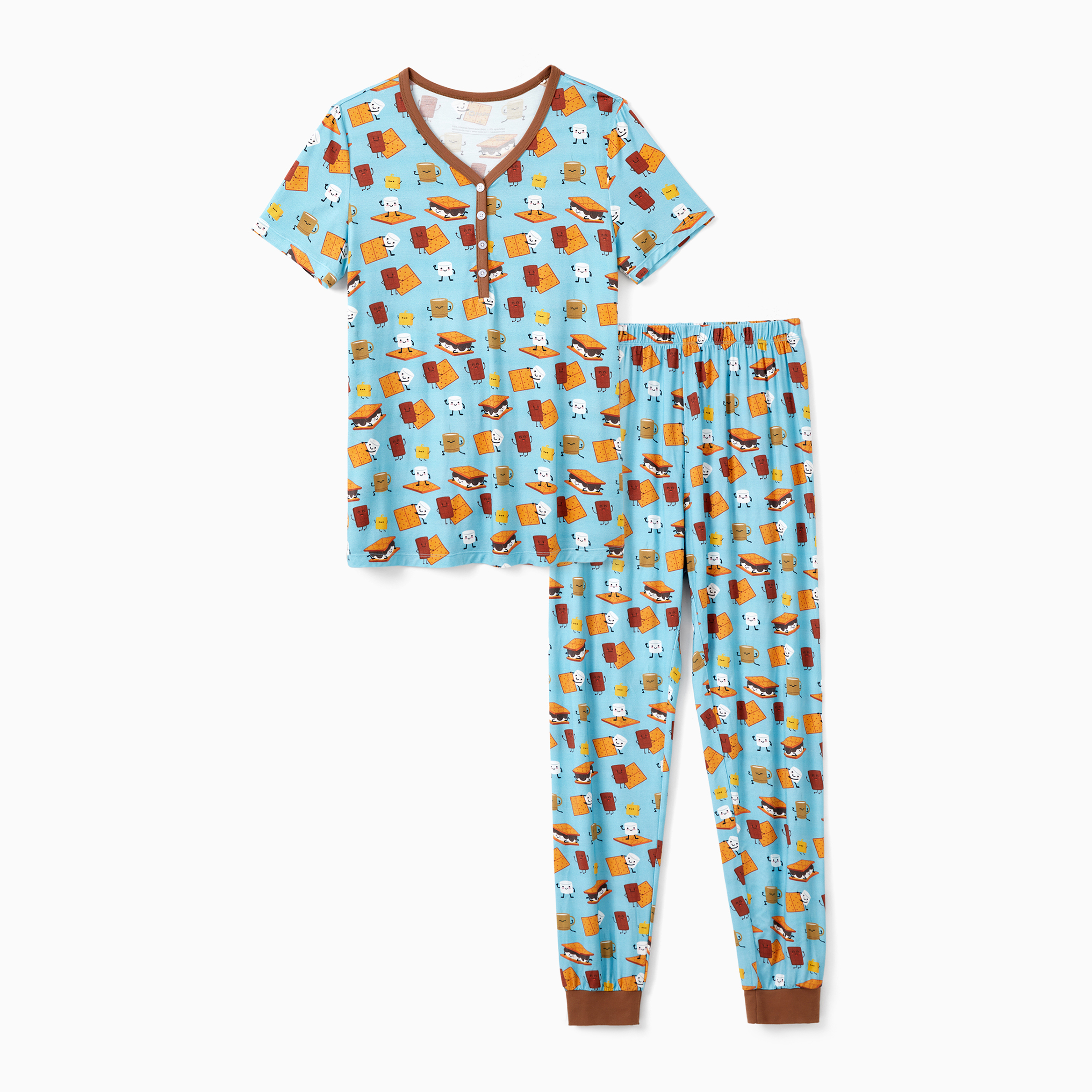 Bamboo Family PJs Cute Print Short Sleeve & Long Pants Sleepwear Matching Pajama set (Snug-Fitting for Children)