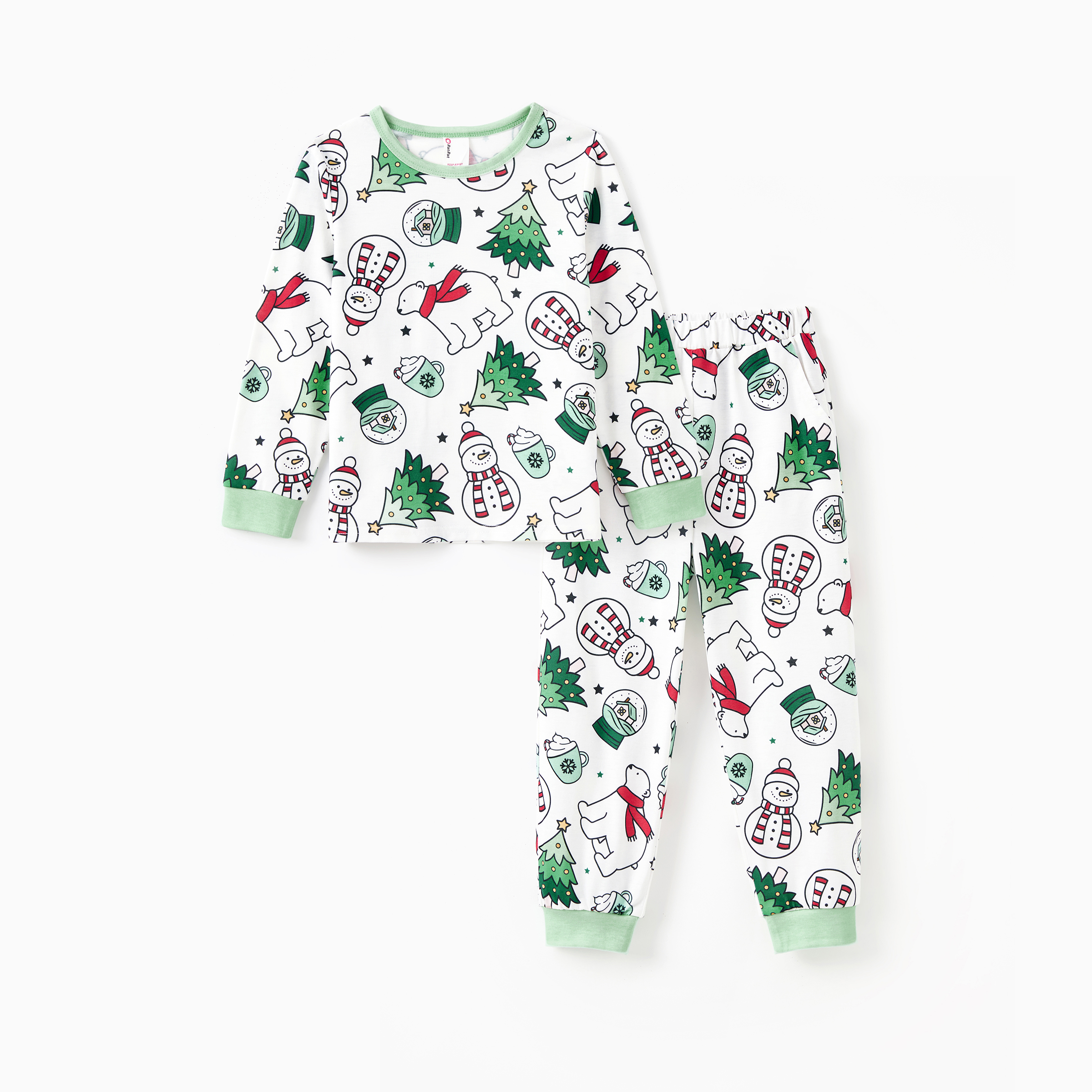 Product Introduction:Celebrate Christmas with your family wearing these matching pajamas, featuring a festive print of Christmas tree, snow globe, snowman and polar bear.;Fabric:Made of 95% polyester and 5% spandex for adults and pets, 96% polyester and 4% spandex for children and babies.;Care Instruction:Machine wash with cold water, do not bleach, and iron with low temperature. Not suitable for dry clean.;Key Features:* Please add each size separately to your shopping cart. * Piece of product: each size comes with 1 set of pajamas (1 top + 1 bottom), or 1 romper, or 1 pet bandana * Product features: flame-resistant, with drawstring and pockets for adults' pajamas * Fabric characteristics: soft and comfortable for sleepwear * Neckline: round * Sleeves: long * Style: matching Christmas pajamas set * Fit: moderate * Length: moderate * Source of goods: imported * Supplier: PatPat;Additional Information:Suitable for fall and winter. Ideal for Christmas pajama parties, family photos, and improving family harmony and cohesion.;