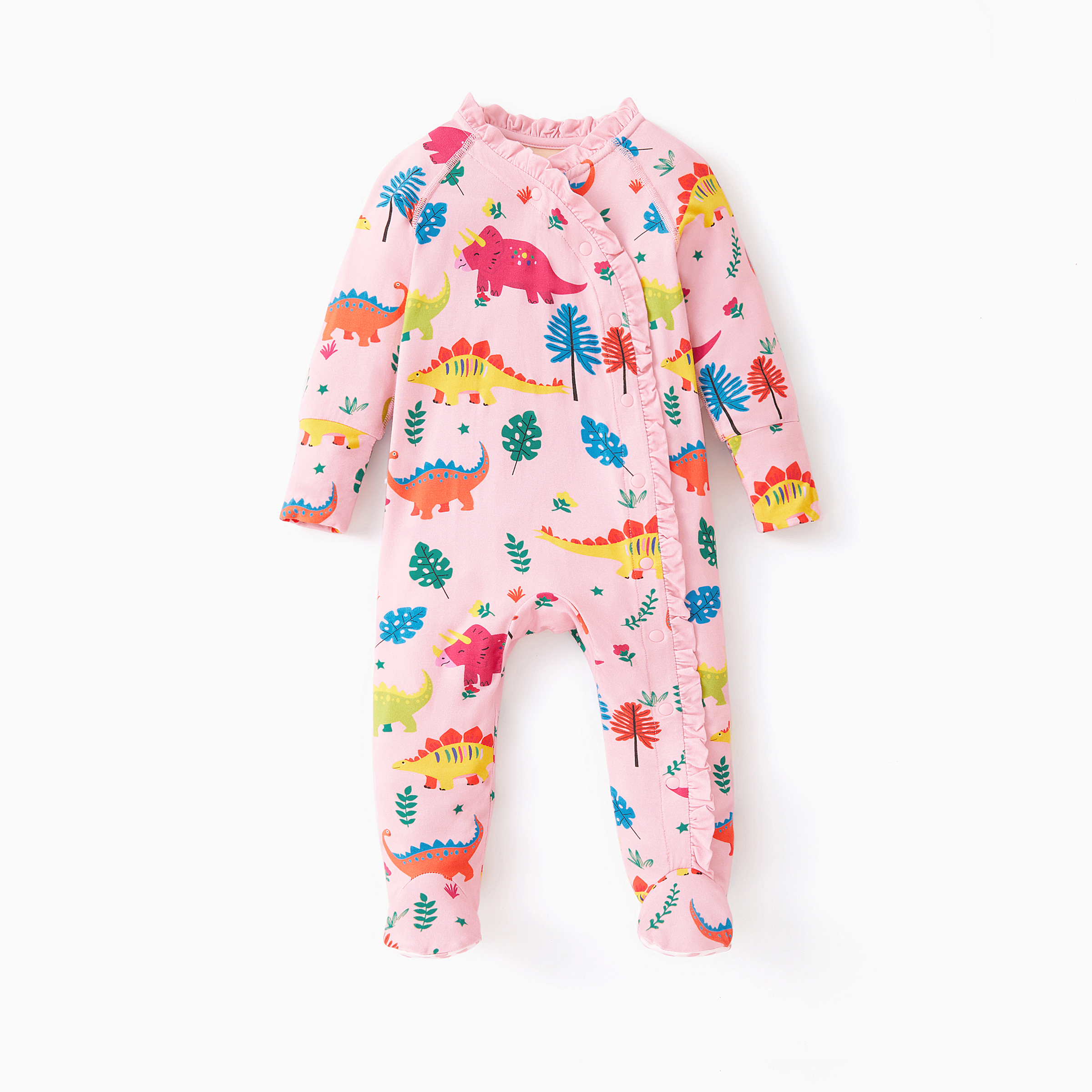 Dream Cozy Baby Girl Dinosaur Print Long-Sleeve Romper