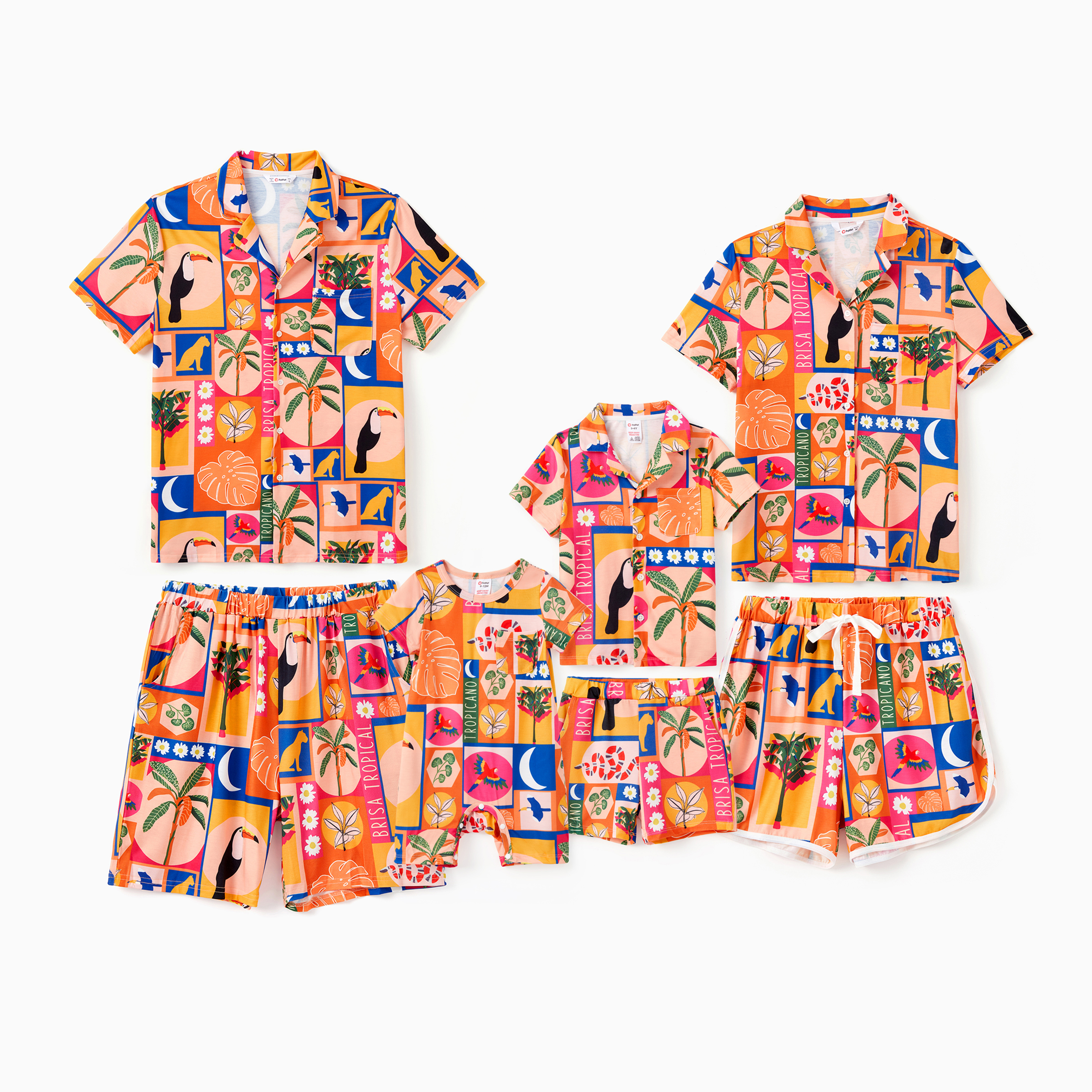 Family Matching Allover Tropical Printed Vacation Pajamas