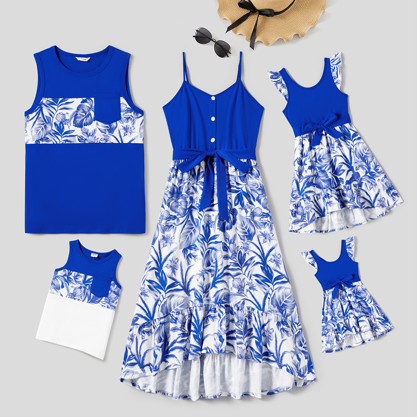 Product Introduction: Vacation-style matching outfit with tropical leaf pattern, suitable for family outings, daily wear and parties.