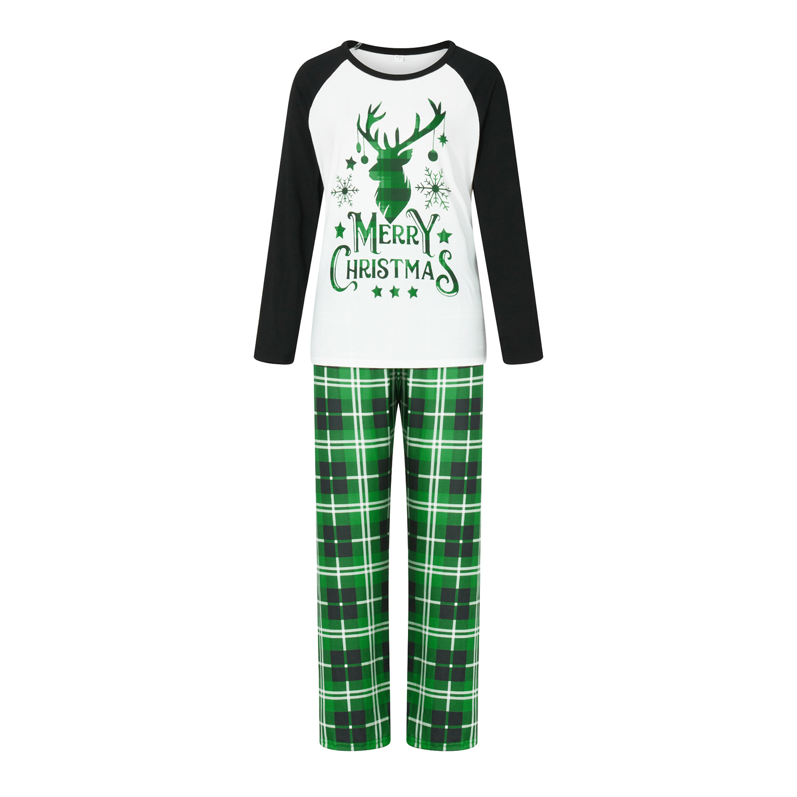 Family Matching Green Plaid Christmas Pajamas Set – “Merry Christmas” Deer Print Long Sleeve Tops and Checkered Pants