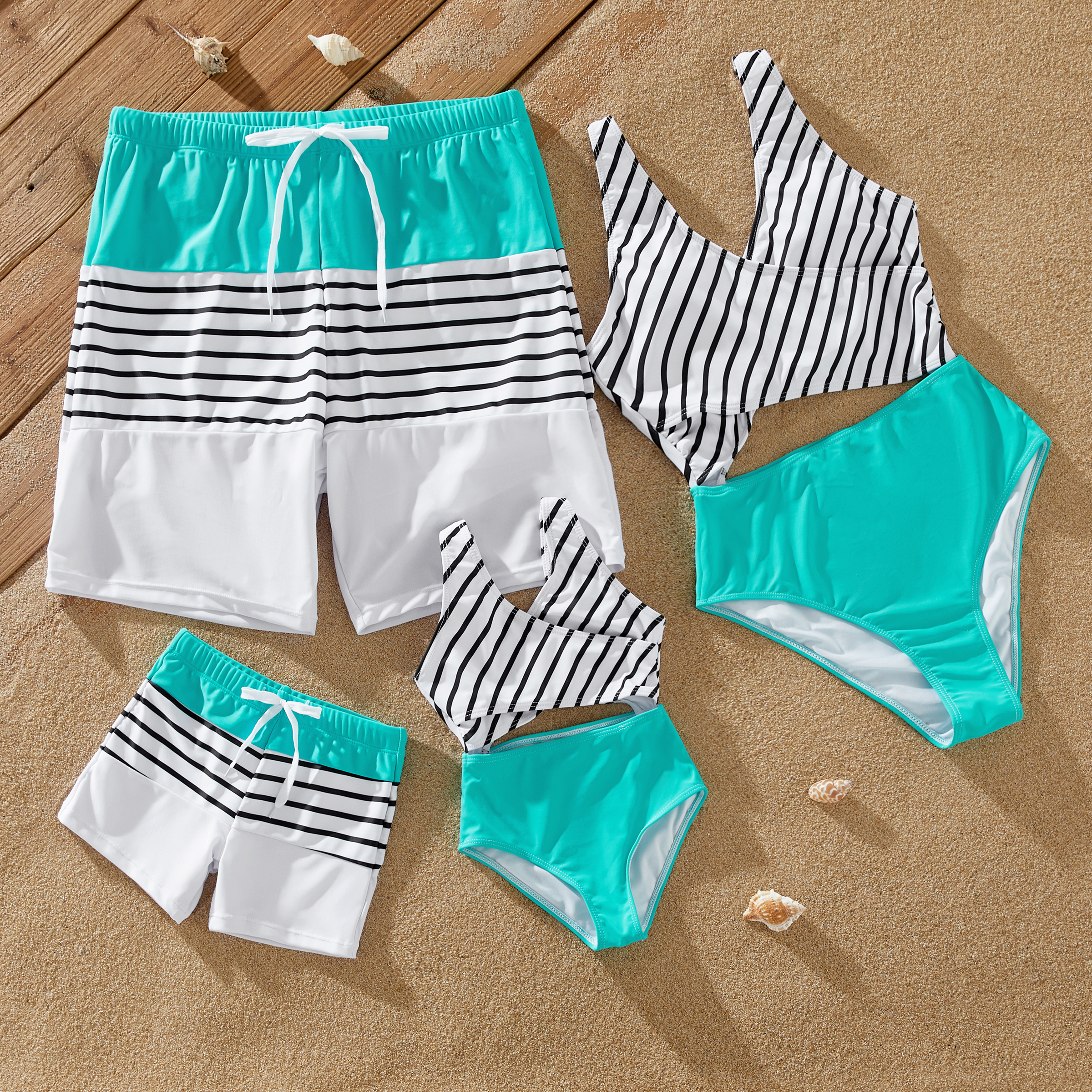 Family Matching Striped Spliced Cut Out One-piece Swimsuit and Colorblock Swim Trunks