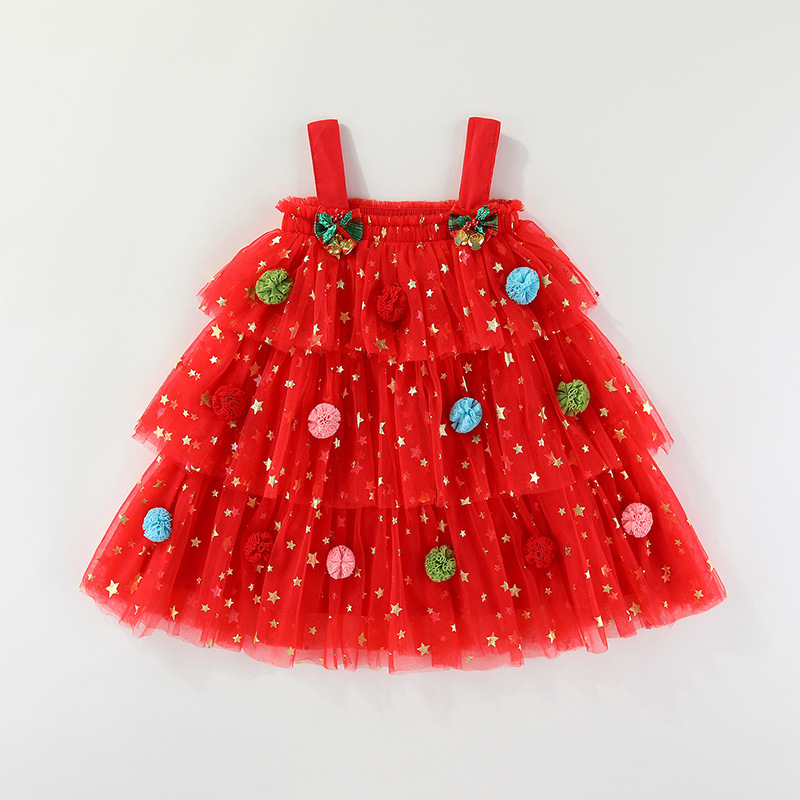 Girls Christmas Tree Tulle Layered Dress – Holiday Sleeveless Party Outfit