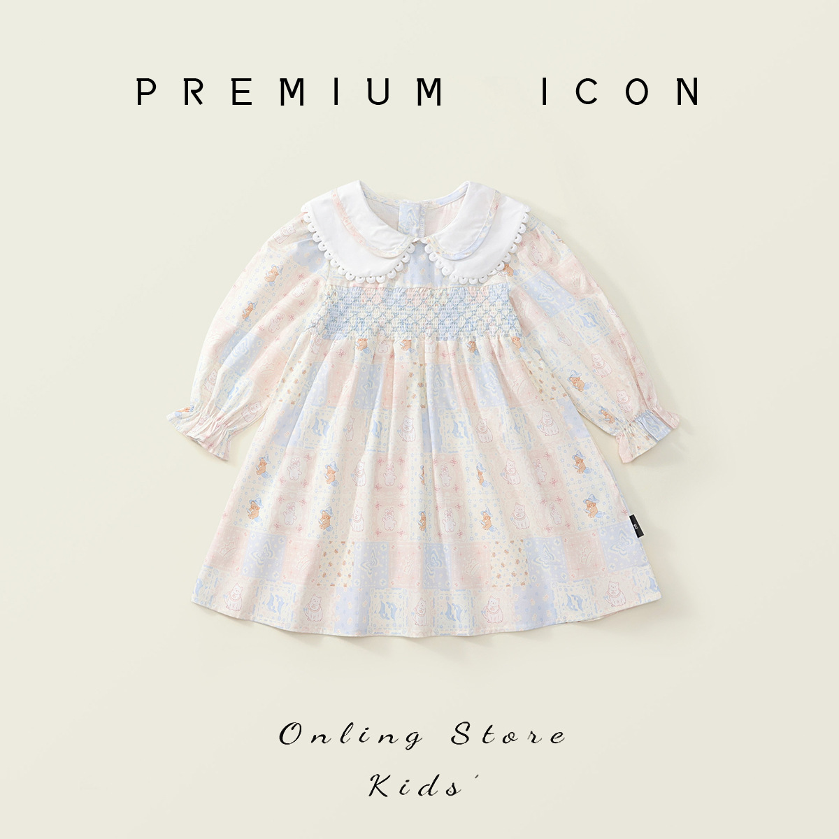 Girls' Pastel Smocked Dress with Pearl Collar Detail