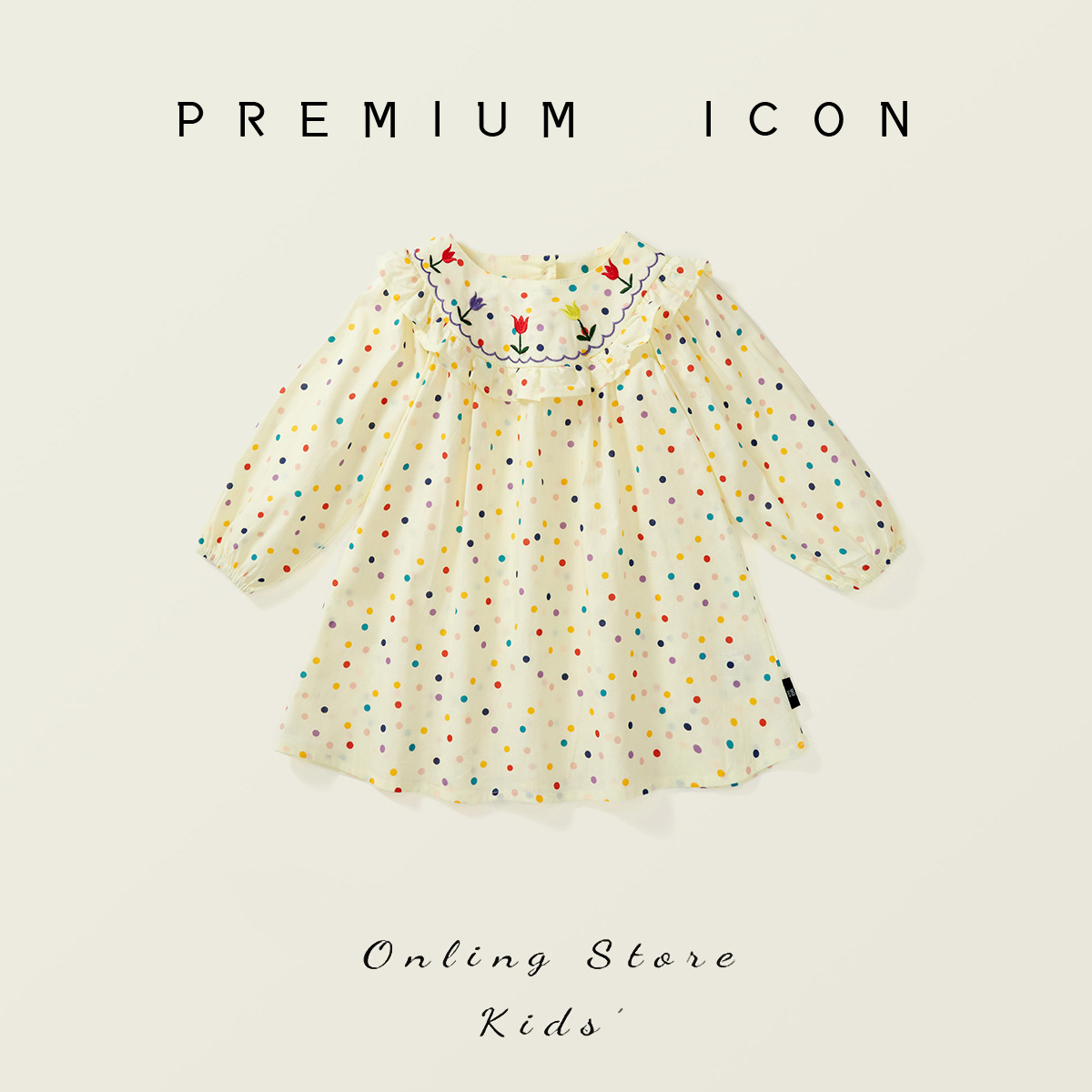 Kid Girl Long Sleeve Polka Dot Dress with Embroidered Ruffle Collar