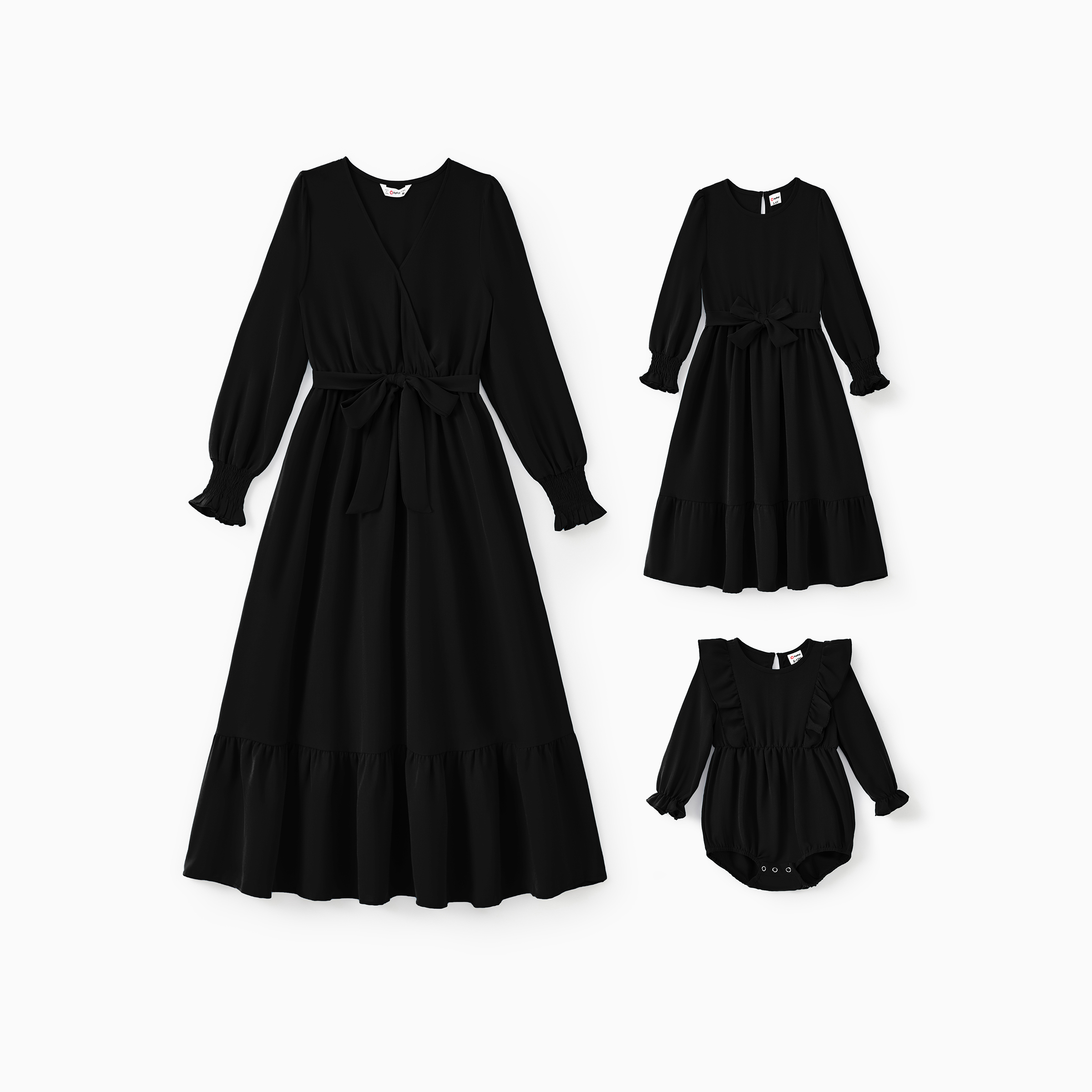 PATPAT Family Set Mother and Child Black Ruffle Long Sleeve Dresses 1pc