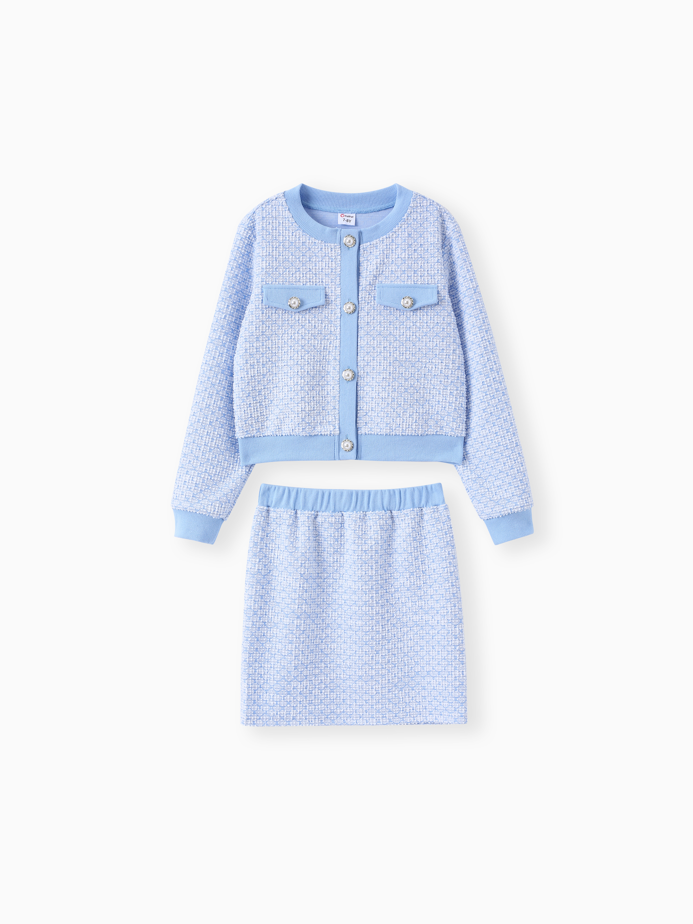 School Girls' Tweed Two-Piece Set Button Front Jacket & Skirt