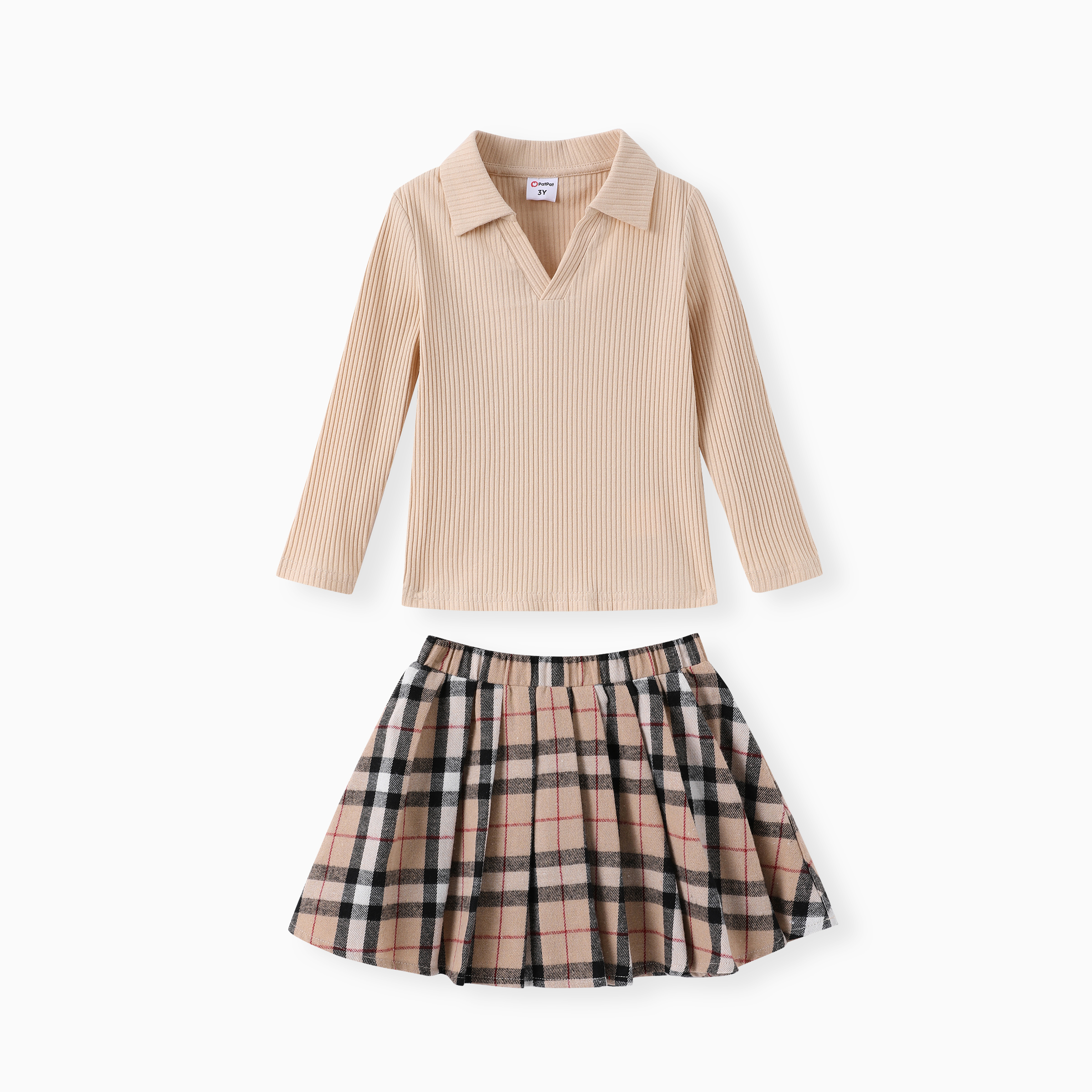 Product Introduction:Stay fashionably chic while keeping your little ones comfortable with this two-piece set, perfect for autumn days out.;Fabric:Made from a combination of cotton and polyester, with a fabric composition ratio of 93% cotton and 7% spandex for the upper body and 65% polyester and 35% cotton for the lower body.;Care Instruction:For best results, machine wash in cold water, do not bleach, dry on low heat, iron on low heat, and do not dry clean.;Key Features:* Product features: Textured fabric. * Fabric characteristics: Moderate. * Piece of product: Two-piece set. * Neckline: V-neck. * Sleeves: Long sleeves. * Style: Fashionable, featuring a fold-down collar. * Fit: Moderate. * Length: Regular. * Source of goods: Imported. * Supplier: PatPat.;Additional information:Suitable for autumn outings and casual occasions. The fashionable design includes a fold-down collar.;