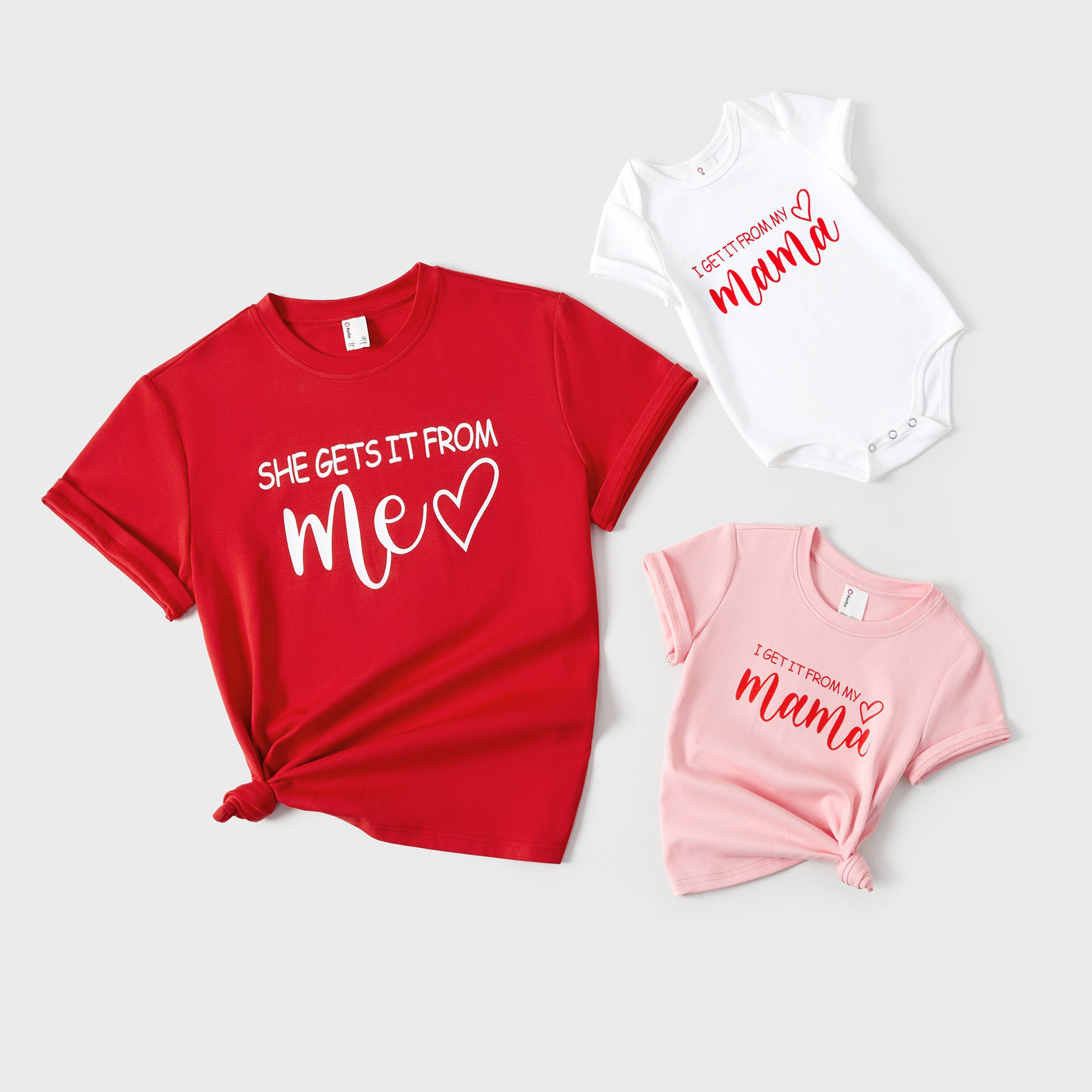 Product Introduction: Trendy matching outfits for Valentine's Day!;Fabric: Made of 94% cotton and 6% spandex.;Care Instruction: Low-temperature ironing. Do not dry clean. Machine wash in cold water, do not bleach.;Key Features: * Please add each size separately to your shopping cart. * Product features: Family letter print, imported. * Fabric characteristics: Thick, breathable cotton material. * Piece of product: Includes 1 top or 1 bodysuit per size. * Neckline: Round. * Sleeves: Short. * Style: Casual with fun letter print design. * Fit: Moderate. * Length: Moderate. * Source of goods: Imported. * Supplier: PatPat.;Additional Information: Perfect for any season, great for family occasions. The matching letter design makes it a great gift for Valentine's Day.