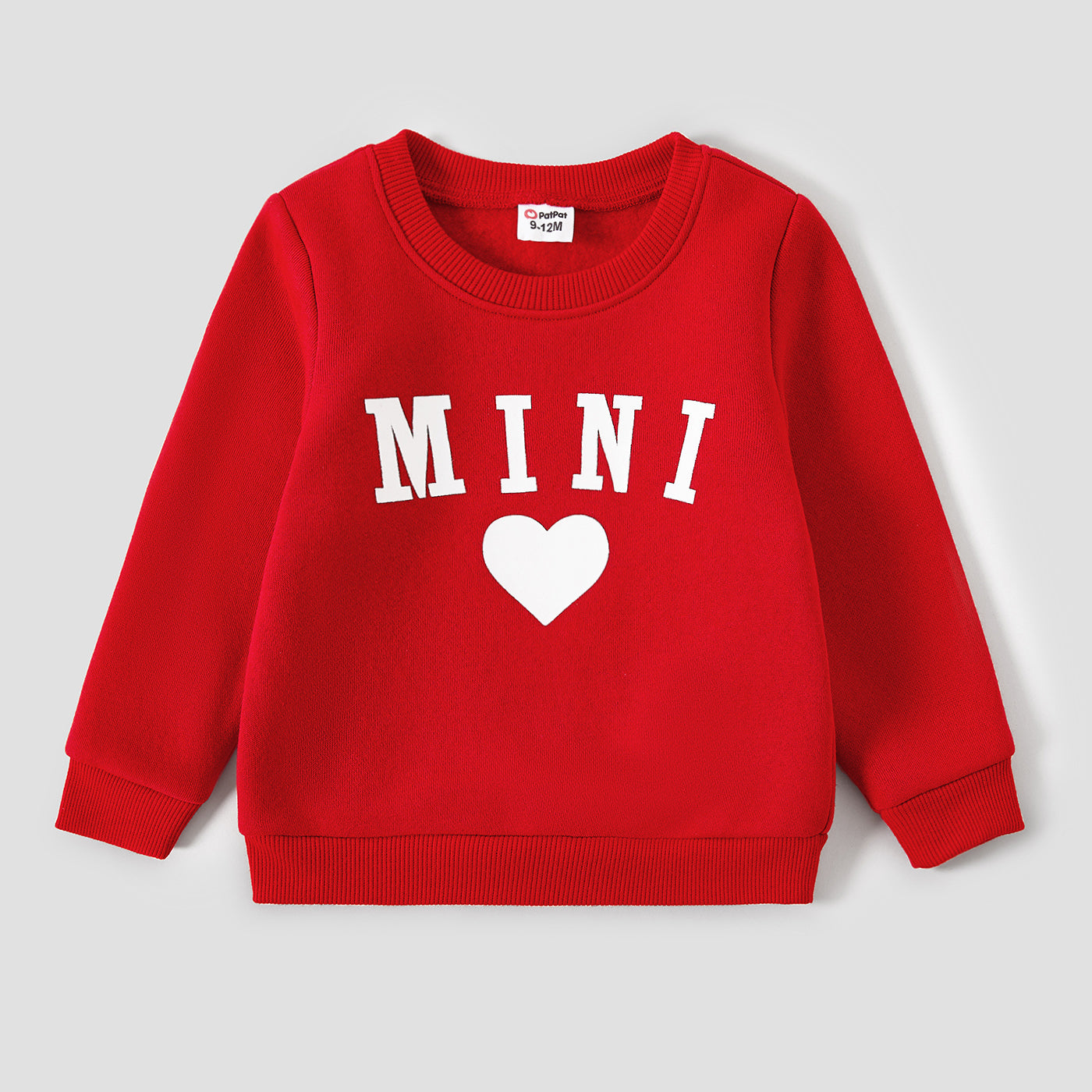 Valentine's Day Mommy and Me Solid Letters & Love Print Long-sleeve Tops
